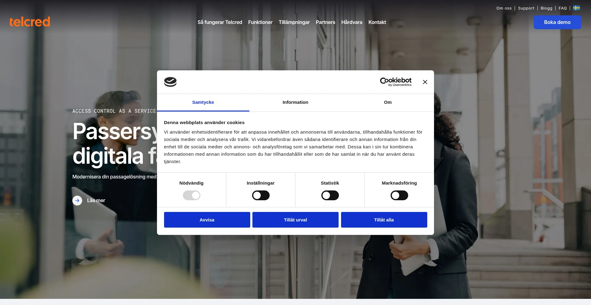 The website implements cookie consent mechanisms in compliance with privacy regulations such as GDPR or CCPA. This demonstrates that telcred.se adheres to data protection standards and provides users with control over personal data collection practices.