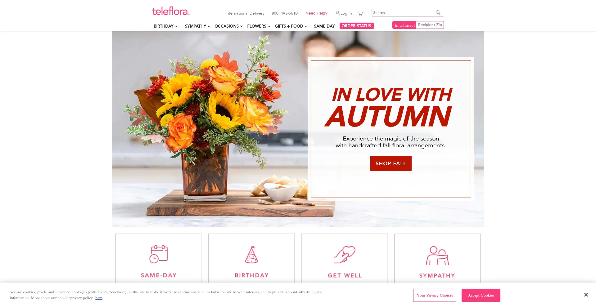 The website implements cookie consent mechanisms in compliance with privacy regulations such as GDPR or CCPA. This demonstrates that teleflora.com adheres to data protection standards and provides users with control over personal data collection practices.