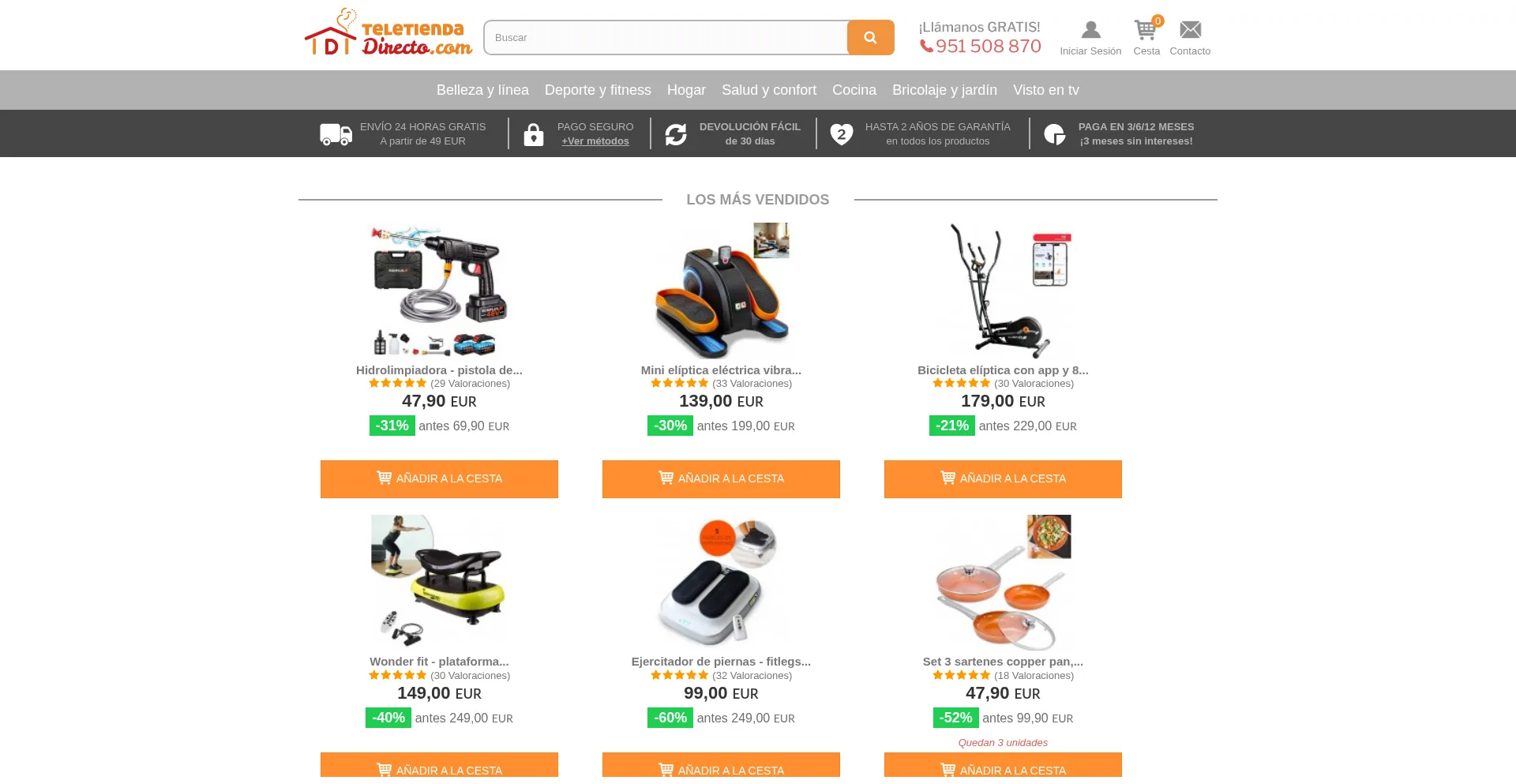 Todo el catálogo Teletienda ✔ Envíos 24H GRATIS ✔ Aceptamos Contrareembolso ✔ Descuentos -60% ✔ 30 días para Devolución ✔ Satisfacción o Reeembolso ✔ Teletienda...