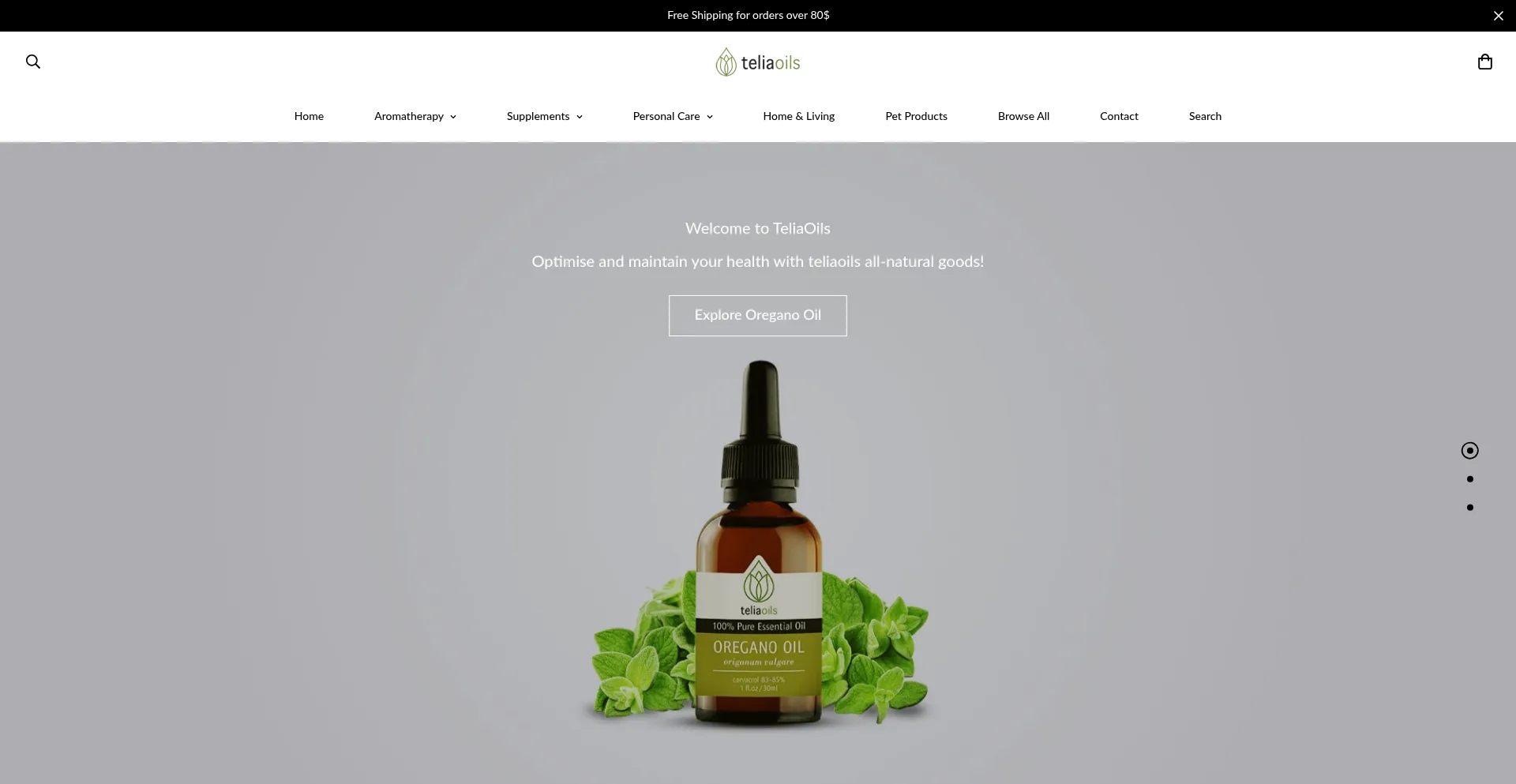 Our analyzer determines that website teliaoils.com is using Shopify CMS. Shopify is a popular e-commerce platform, powering around 4.4% of websites globally.