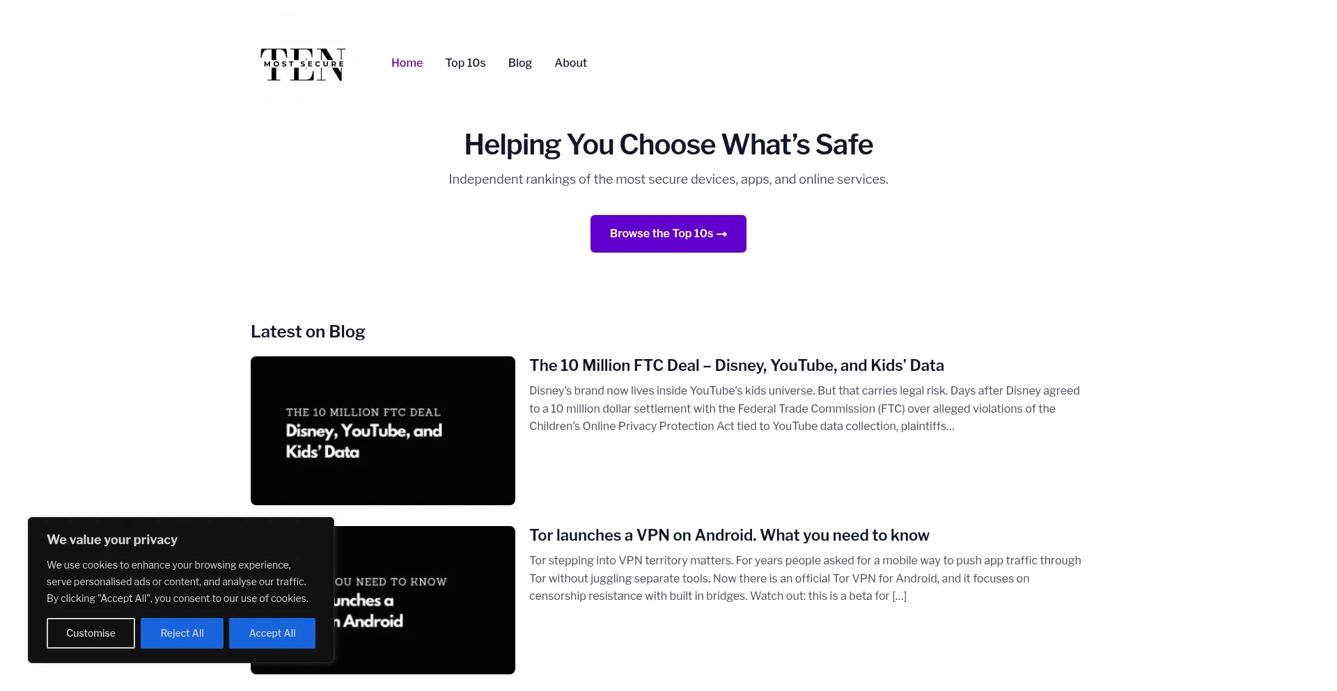 The website implements cookie consent mechanisms in compliance with privacy regulations such as GDPR or CCPA. This demonstrates that tenmostsecure.com adheres to data protection standards and provides users with control over personal data collection practices.