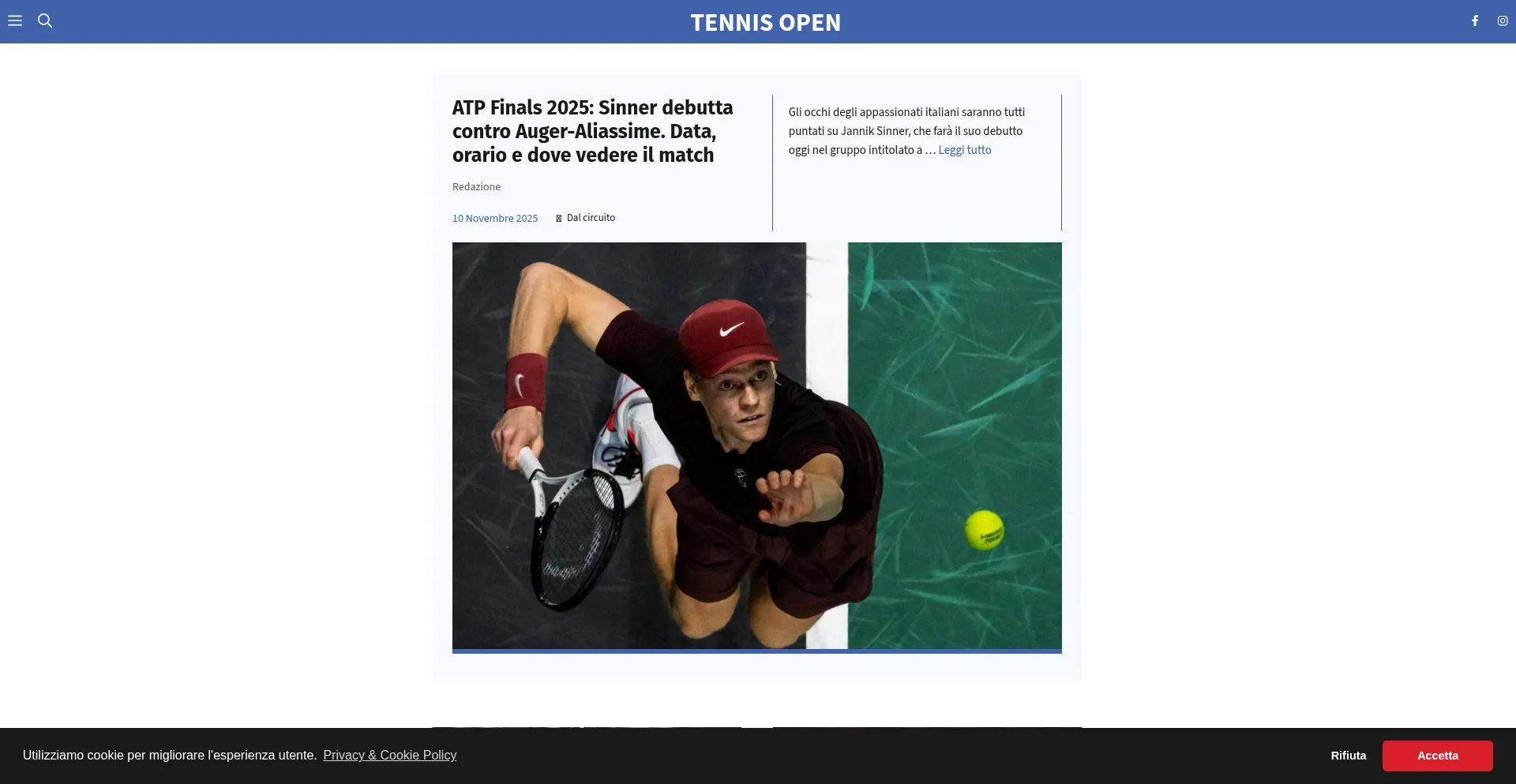 The website implements cookie consent mechanisms in compliance with privacy regulations such as GDPR or CCPA. This demonstrates that tennis-open.it adheres to data protection standards and provides users with control over personal data collection practices.