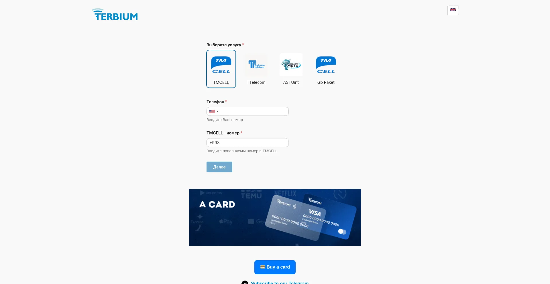 TMCELL (Altyn Asyr), Turkmen Telecom, WiFi, ASTU — Fast Top-Up — Terbium.Pro