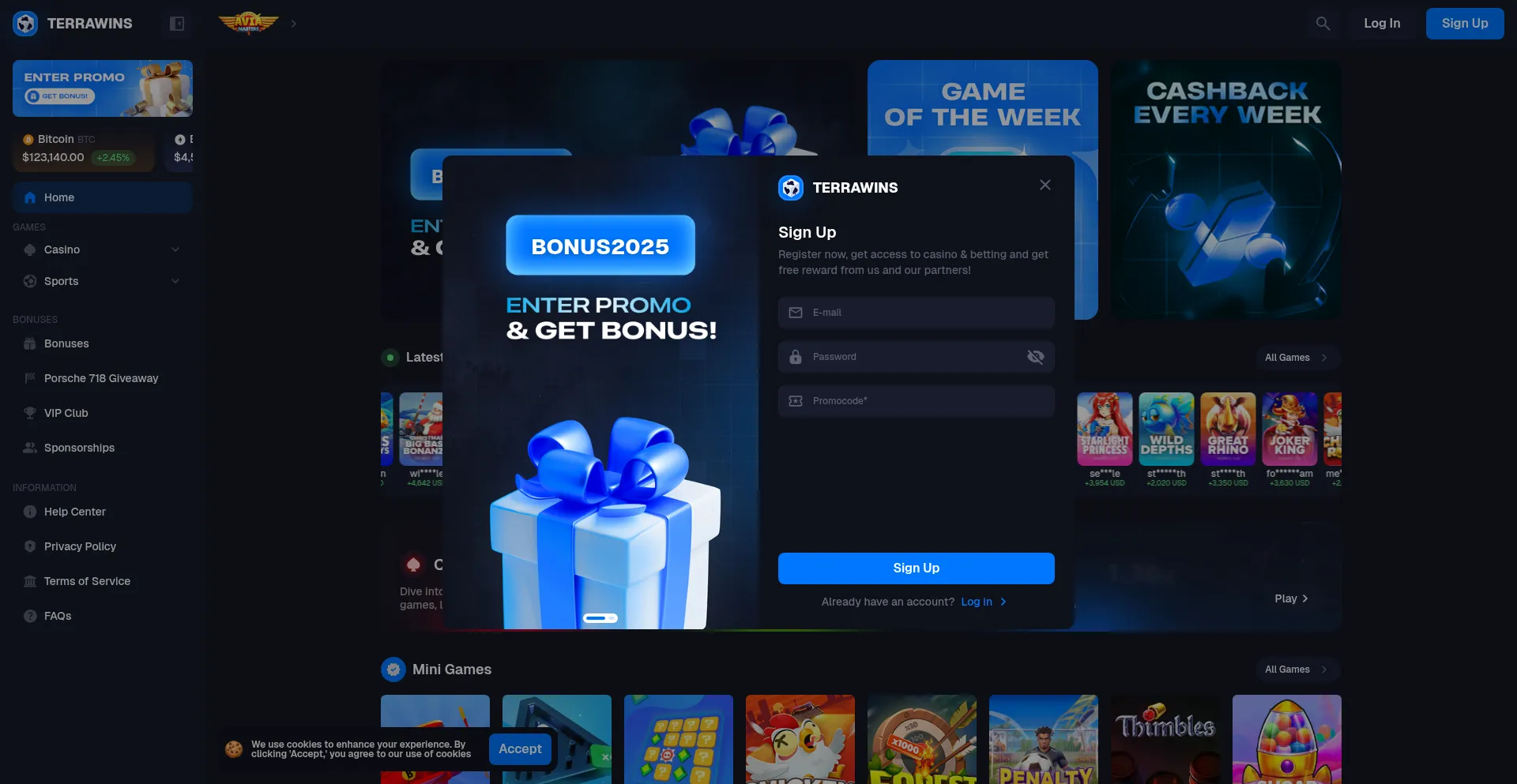 The website implements cookie consent mechanisms in compliance with privacy regulations such as GDPR or CCPA. This demonstrates that terrawins.com adheres to data protection standards and provides users with control over personal data collection practices.