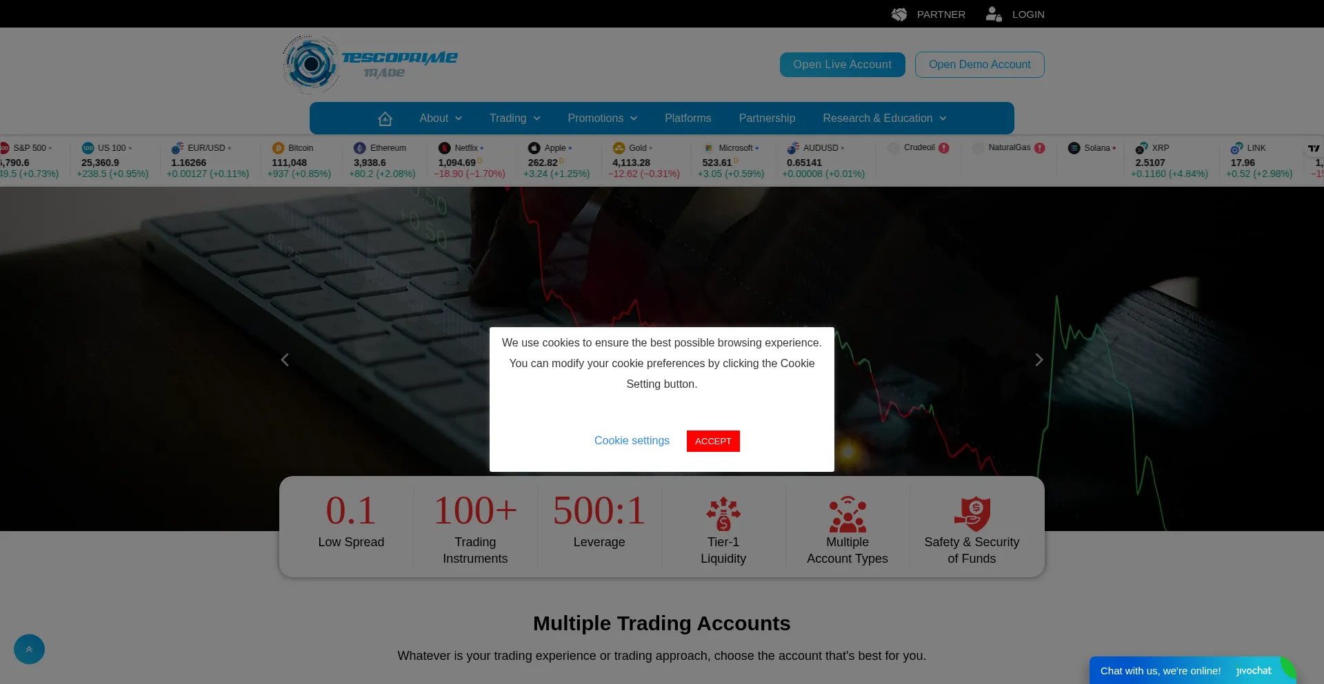 The website implements cookie consent mechanisms in compliance with privacy regulations such as GDPR or CCPA. This demonstrates that tescoprimetrade.com adheres to data protection standards and provides users with control over personal data collection practices.