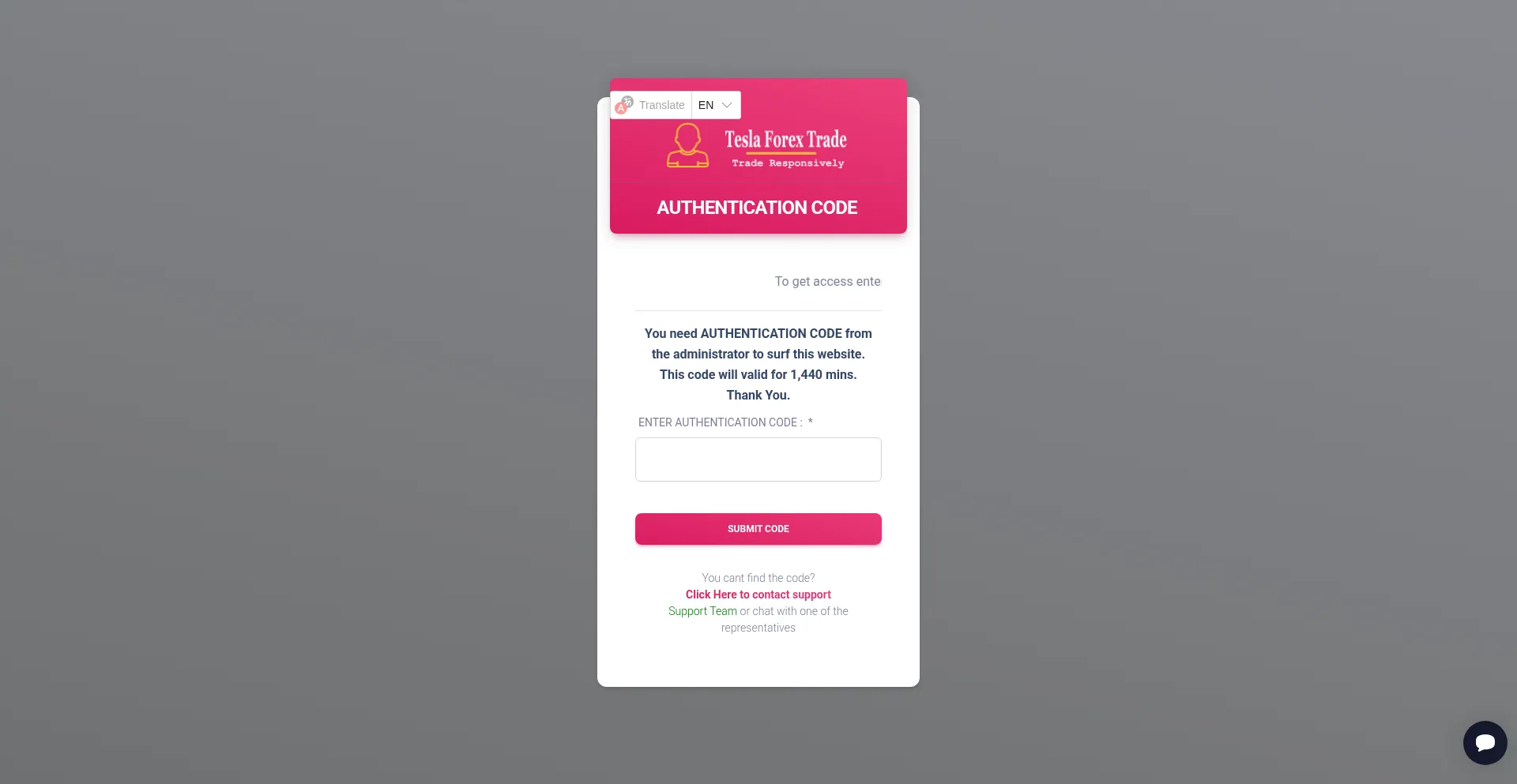 AUTHENTICATION CODE