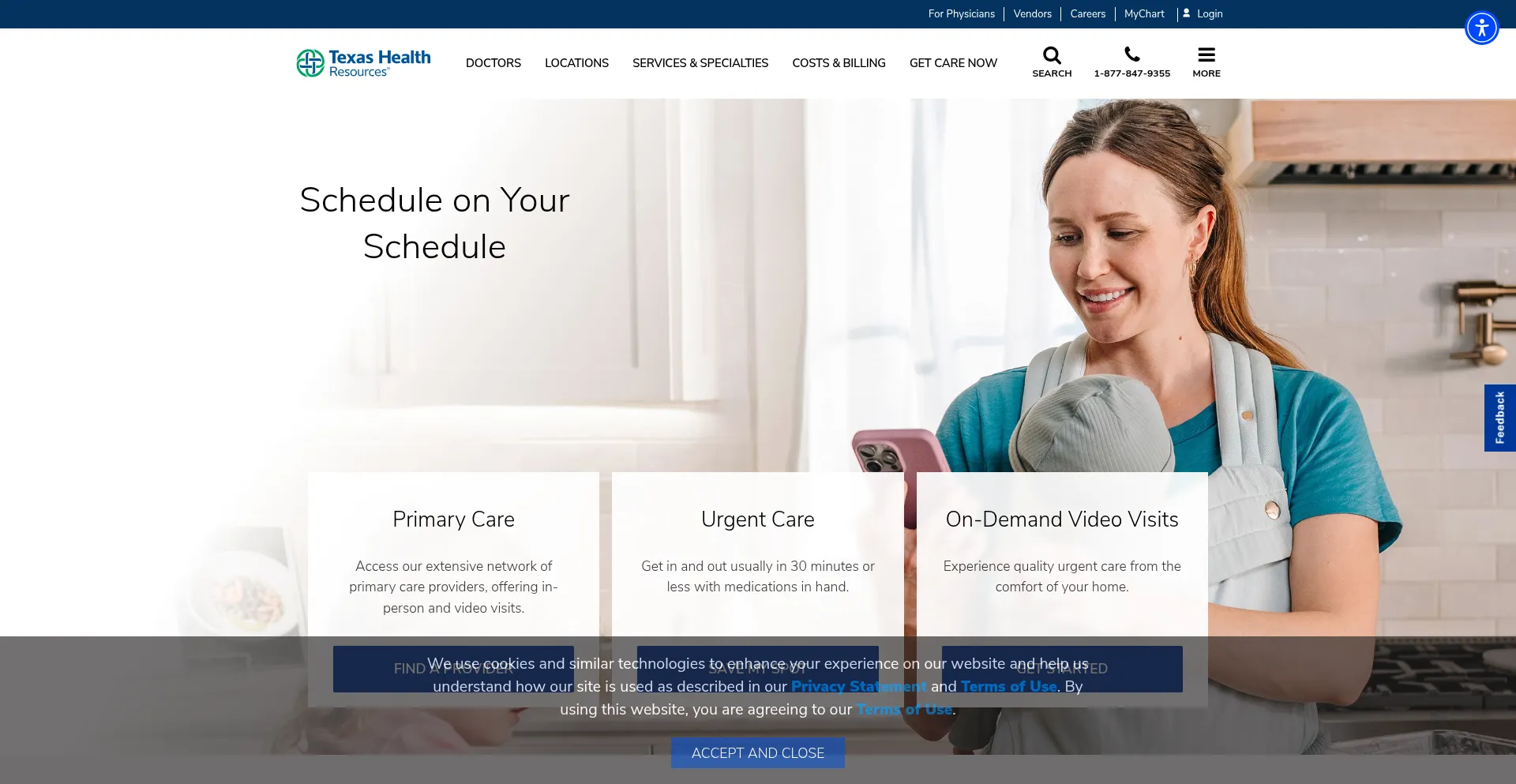 The website implements cookie consent mechanisms in compliance with privacy regulations such as GDPR or CCPA. This demonstrates that texashealth.org adheres to data protection standards and provides users with control over personal data collection practices.