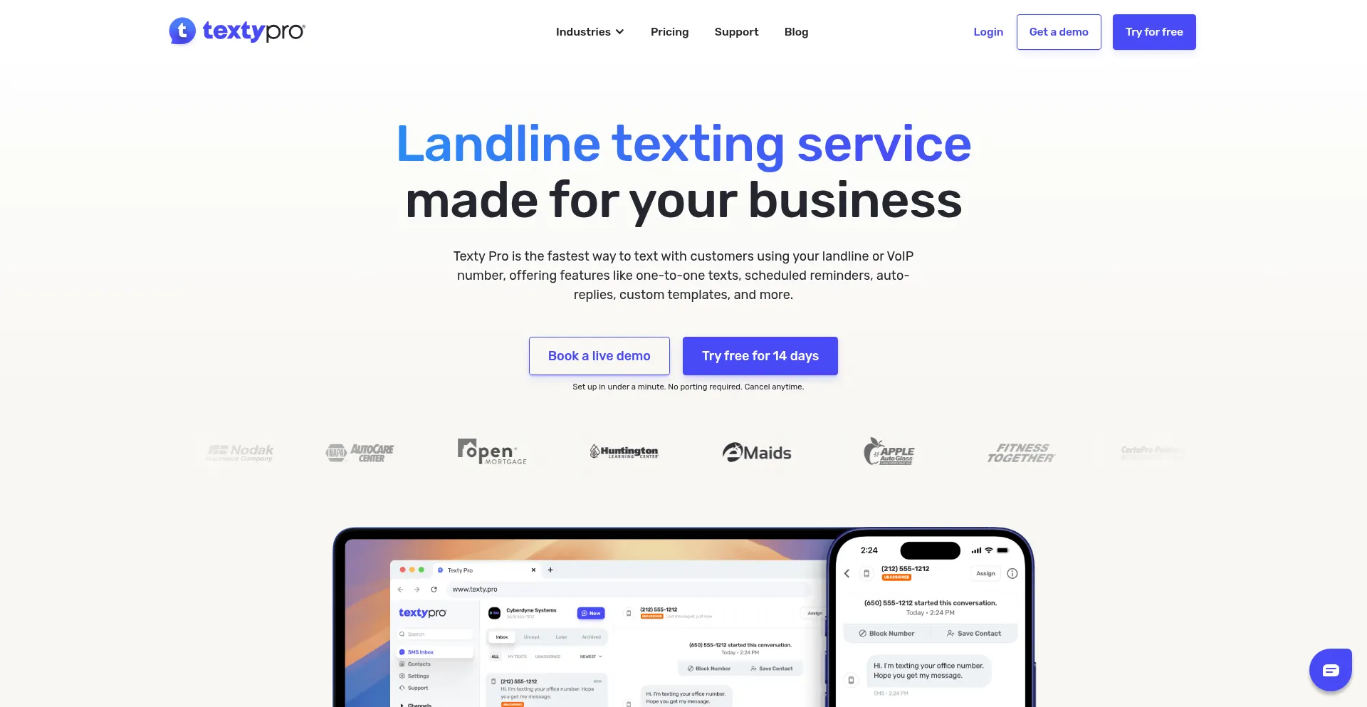 Text using your landline or VoIP number via computer or mobile, schedule messages, set auto-greetings, and manage off-hour replies. Start your free trial today!