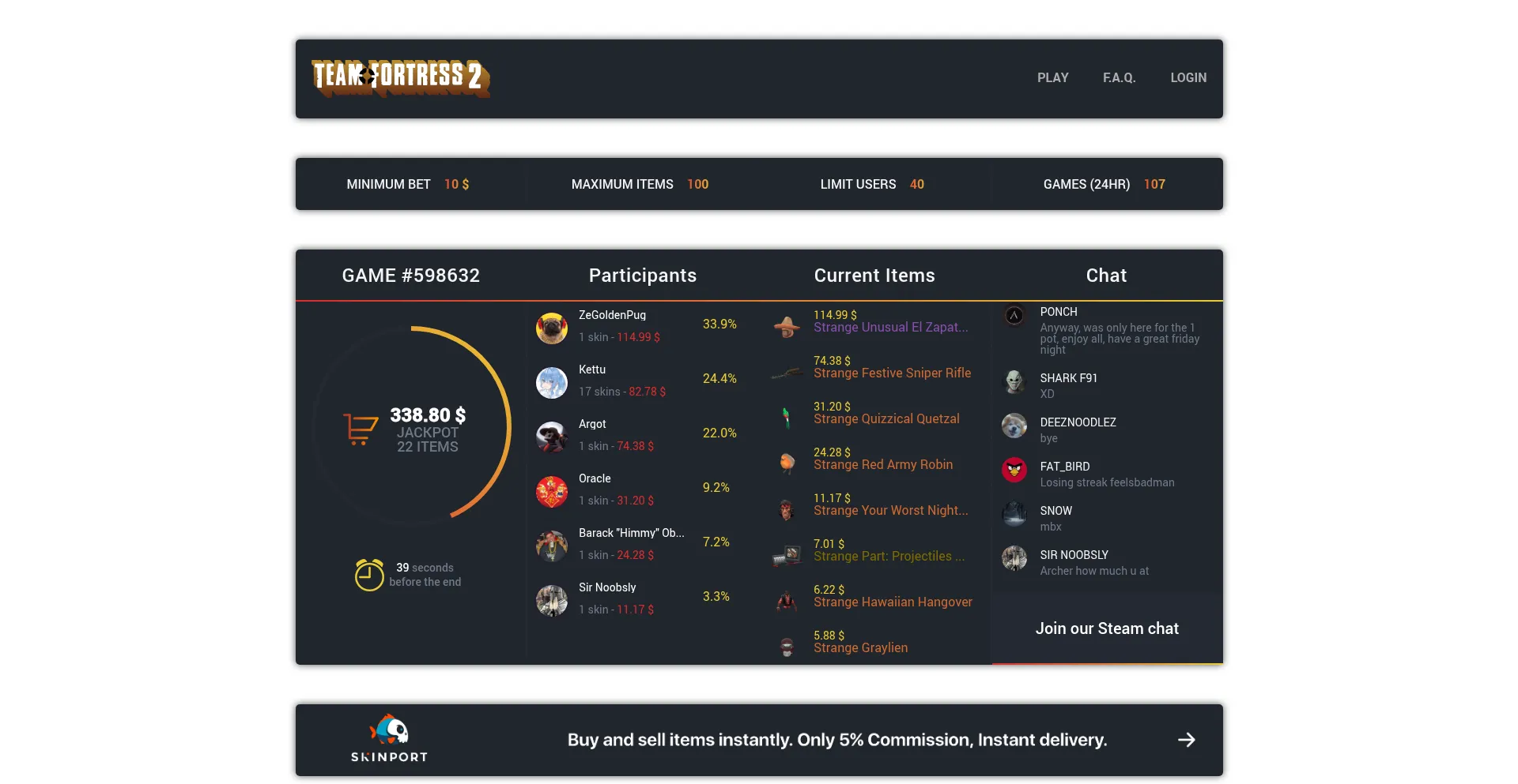 Want to win Team Fortress 2 Items? Bet items on tf2lands.com, the biggest and most trusted Team Fortress 2 gambling site. Win your dream items at tf2lands.com!