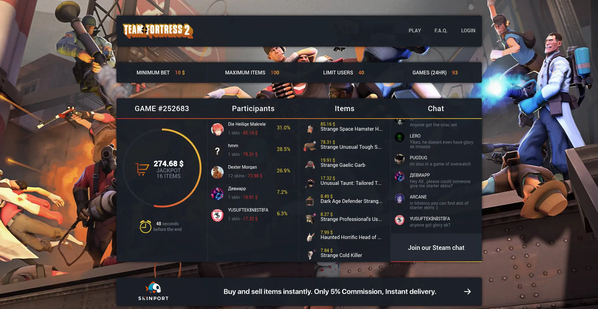 Want to win Team Fortress 2 Items? Bet items on tf2radiance.com, the biggest and most trusted Team Fortress 2 gambling site. Win your dream items at tf2radiance.com!