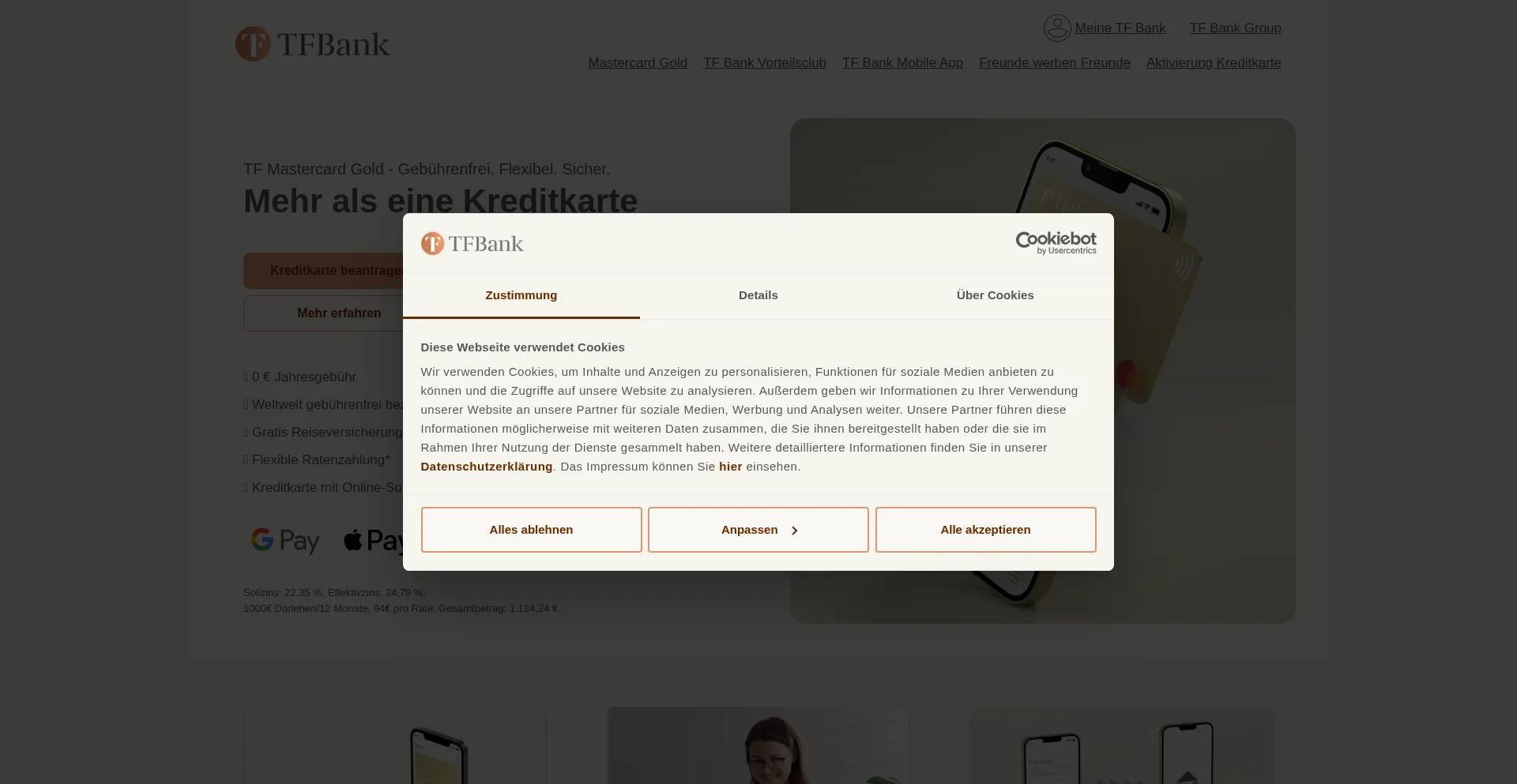 The website implements cookie consent mechanisms in compliance with privacy regulations such as GDPR or CCPA. This demonstrates that tfbank.at adheres to data protection standards and provides users with control over personal data collection practices.