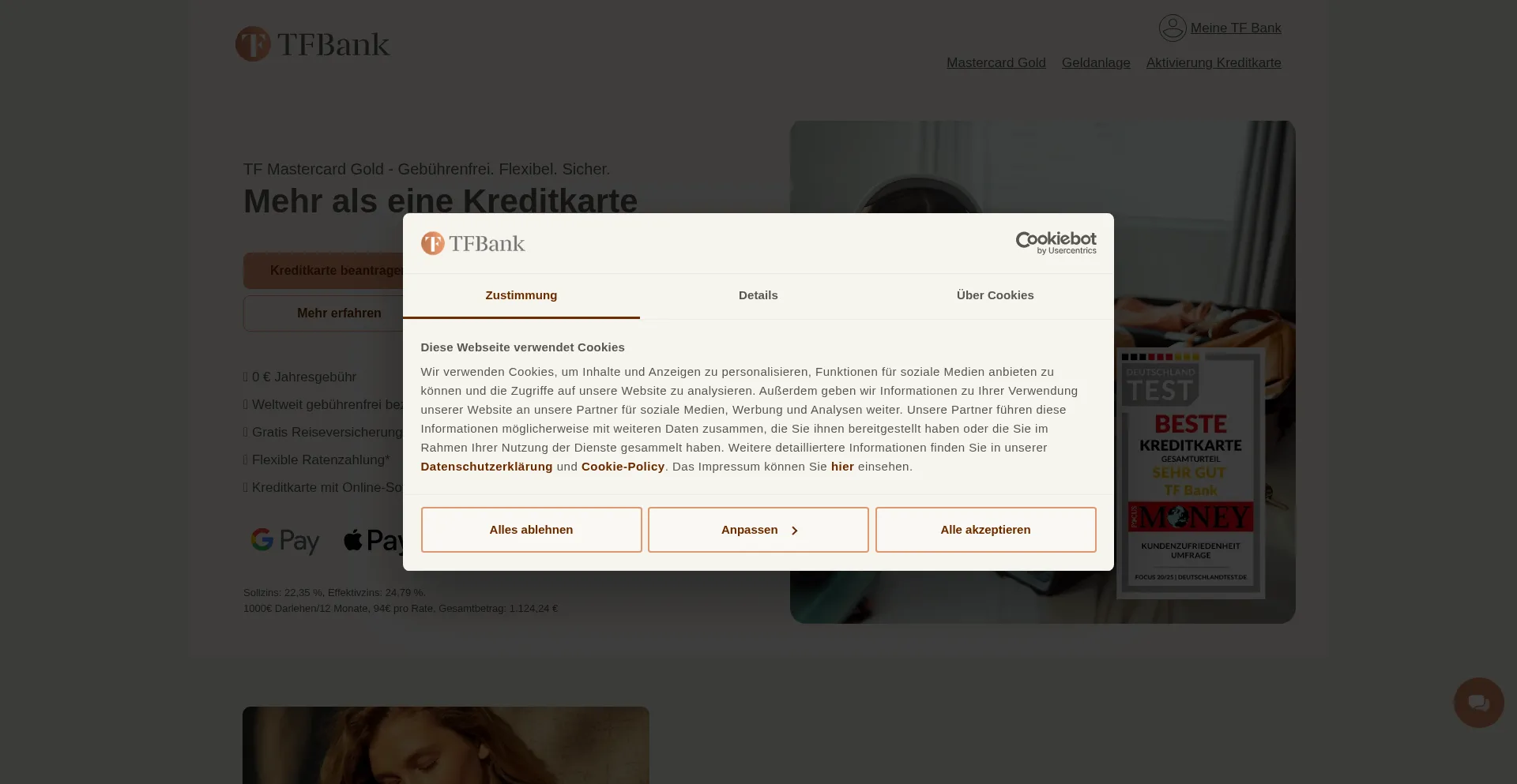 The website implements cookie consent mechanisms in compliance with privacy regulations such as GDPR or CCPA. This demonstrates that tfbank.de adheres to data protection standards and provides users with control over personal data collection practices.