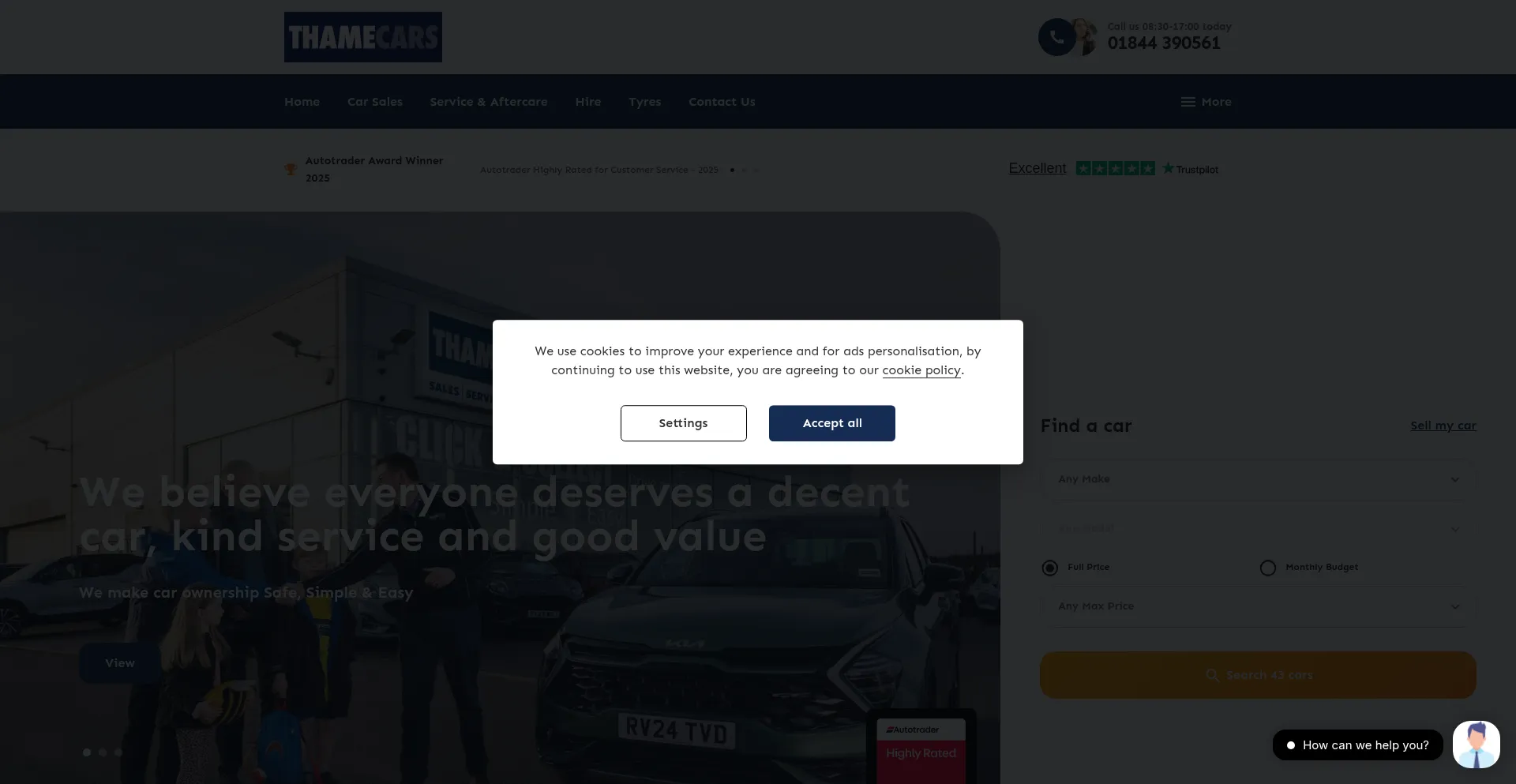 The website implements cookie consent mechanisms in compliance with privacy regulations such as GDPR or CCPA. This demonstrates that thamecars.co.uk adheres to data protection standards and provides users with control over personal data collection practices.