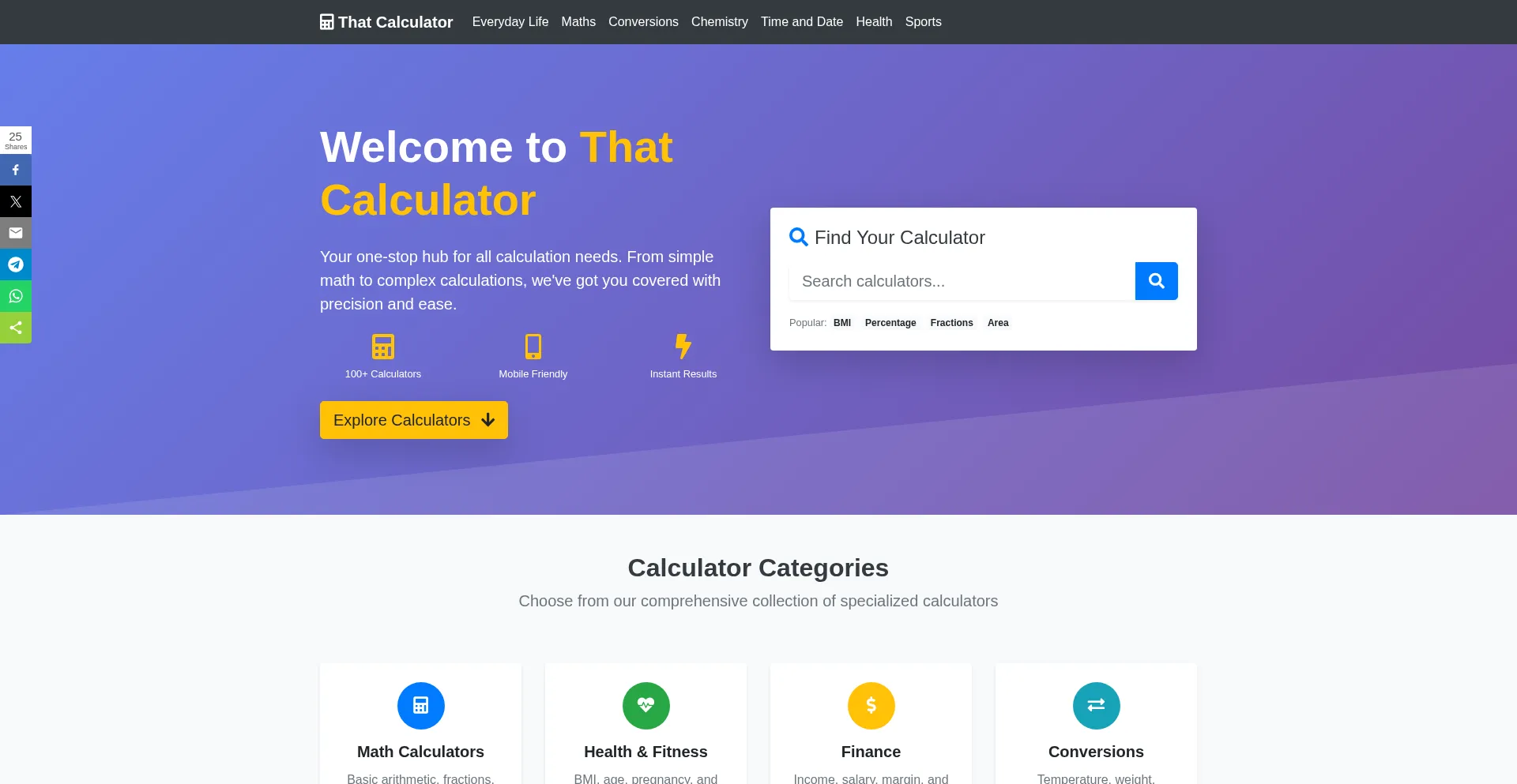 A comprehensive online calculator hub, we make math easy with our online calculator and conversion tools. Find a wide range of calculators and converters to simplify your calcul...