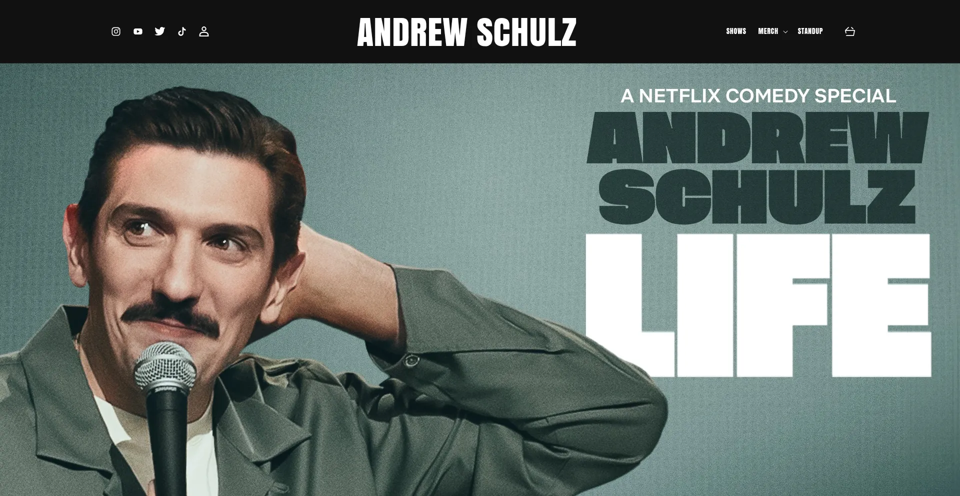 The theandrewschulz.com website uses Google Tag Manager to add and update tracking tags on its website.