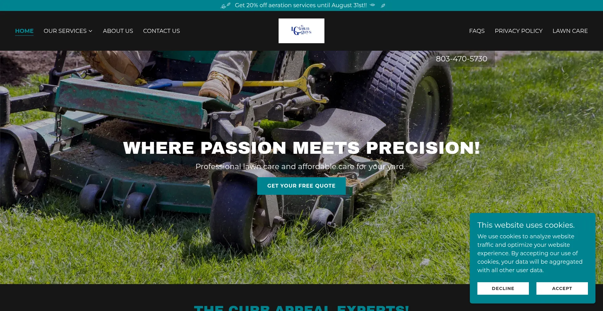 The website implements cookie consent mechanisms in compliance with privacy regulations such as GDPR or CCPA. This demonstrates that thebestlawnguys.com adheres to data protection standards and provides users with control over personal data collection practices.