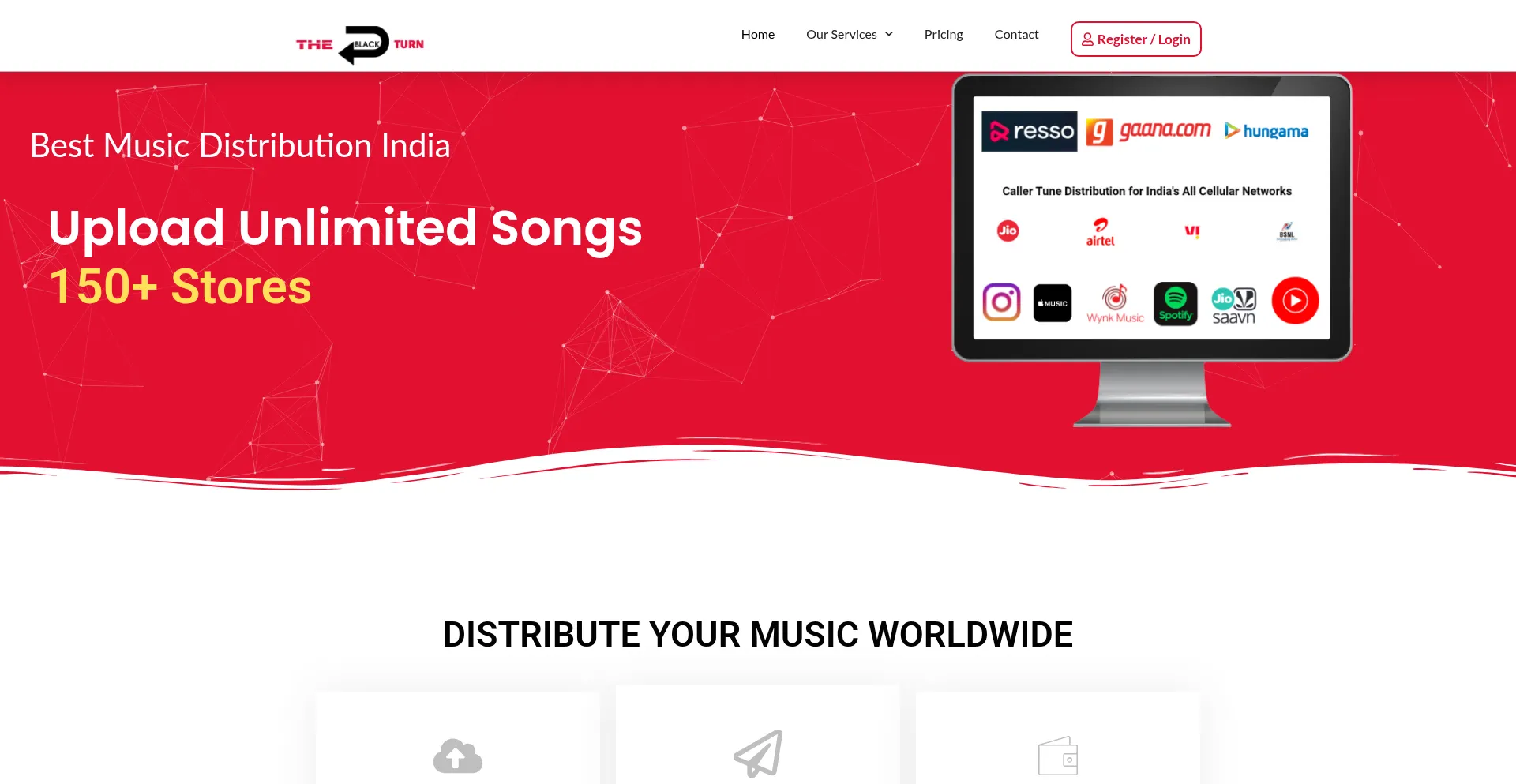 Best Music Distribution India150+ outlets Streaming platforms: JioSaavn, Gaana, Wynk, iTunes, Spotify, Caller Tune facility on India's all networks.