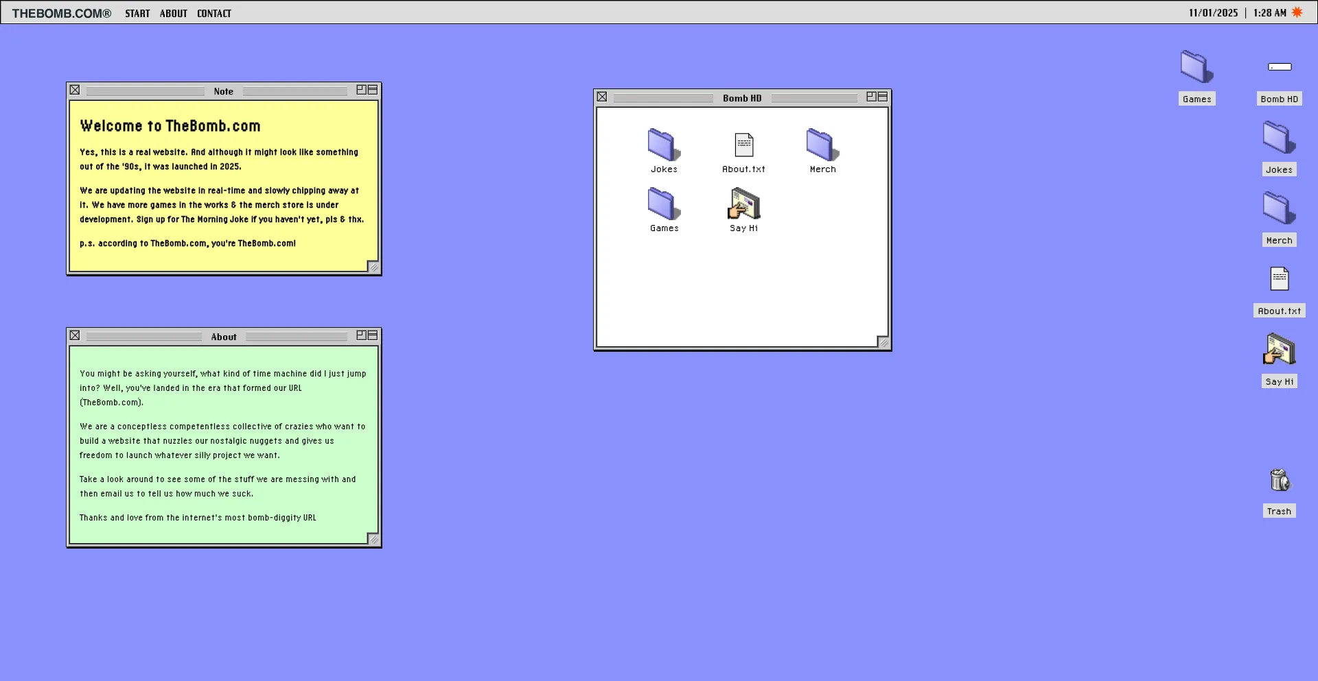 The thebomb.com website contains incomplete elements including placeholder content, unfinished features, or development artifacts, indicating ongoing construction or maintenance. This may reflect inadequate quality assurance processes or premature deployment, potentially affecting site reliability and user experience.
