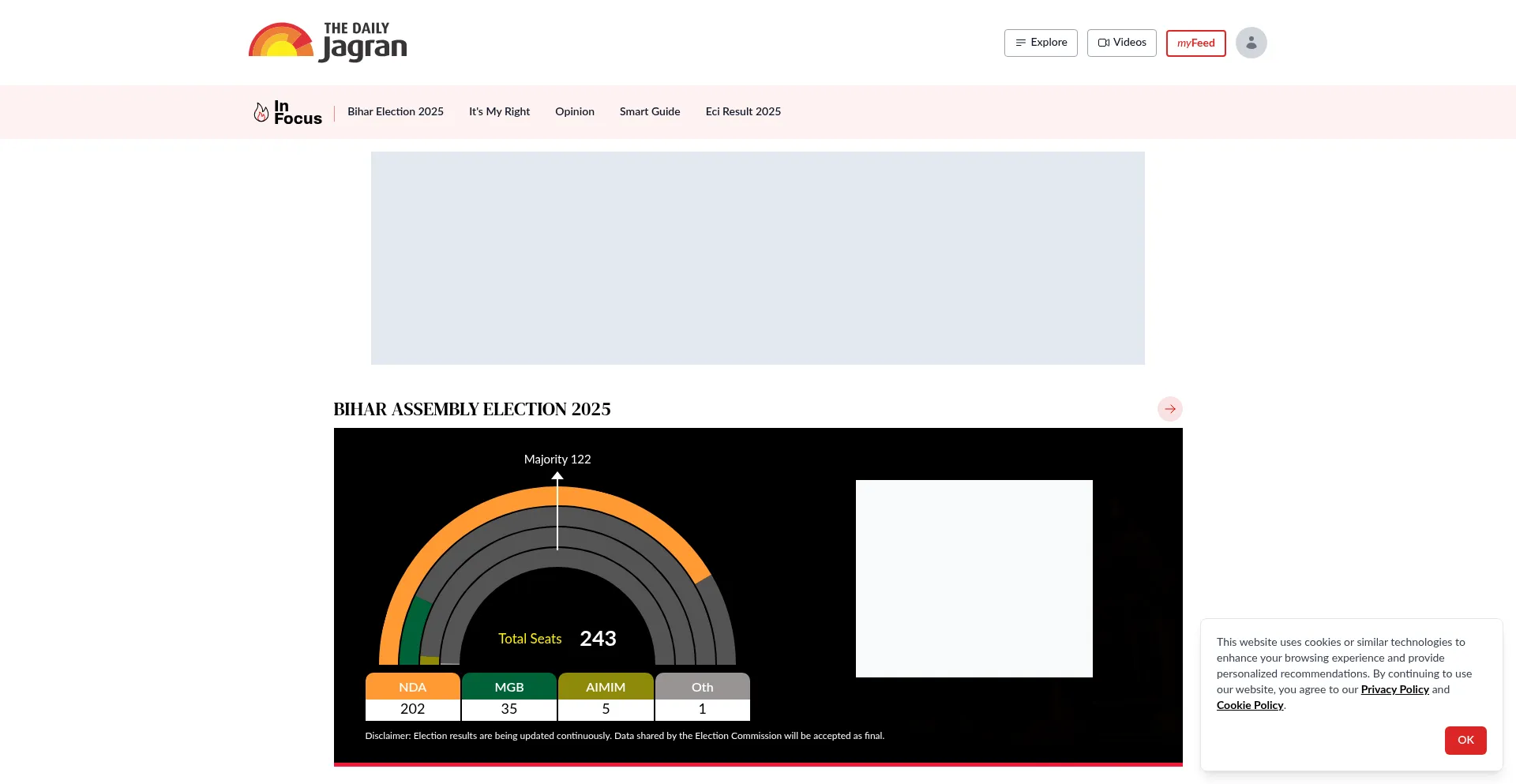 The website implements cookie consent mechanisms in compliance with privacy regulations such as GDPR or CCPA. This demonstrates that thedailyjagran.com adheres to data protection standards and provides users with control over personal data collection practices.