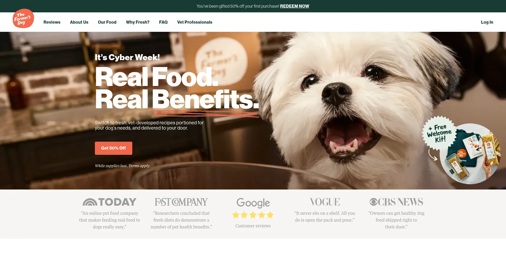 The Farmer’s Dog provides healthier fresh dog food: 100% human-grade food, pre-portioned and delivered to your door. Create your plan today!