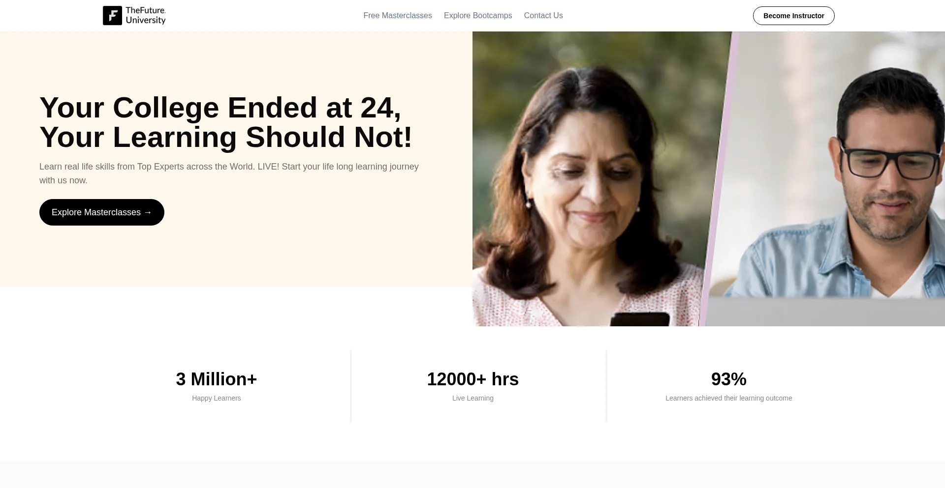 The Future University is a live learning platform that offers masterclasses and bootcamps from top experts in the world. Join us and take the first step towards a better future.