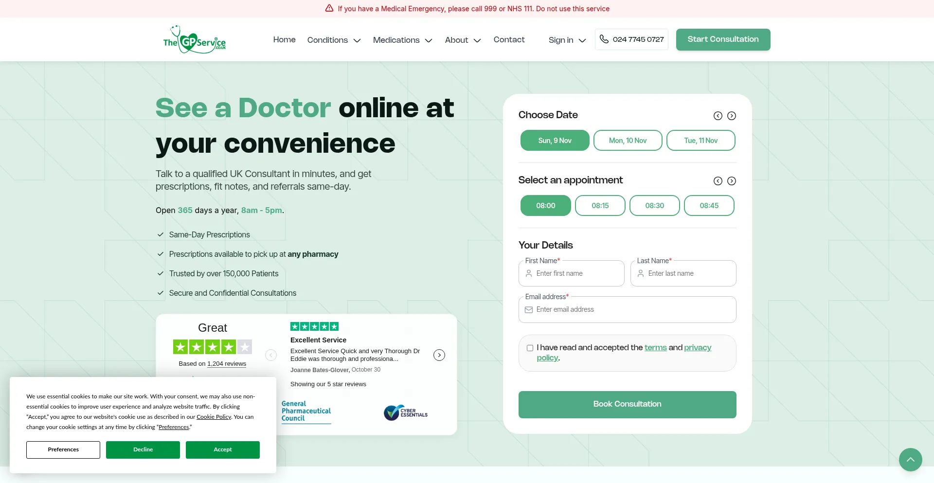 The website implements cookie consent mechanisms in compliance with privacy regulations such as GDPR or CCPA. This demonstrates that thegpservice.co.uk adheres to data protection standards and provides users with control over personal data collection practices.