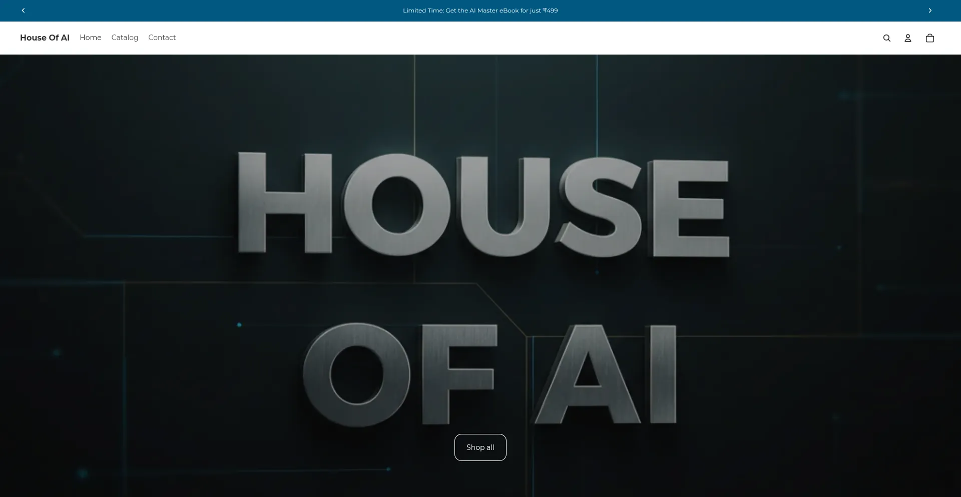 Our analyzer determines that website thehouseofai.shop is using Shopify CMS. Shopify is a popular e-commerce platform, powering around 4.4% of websites globally.