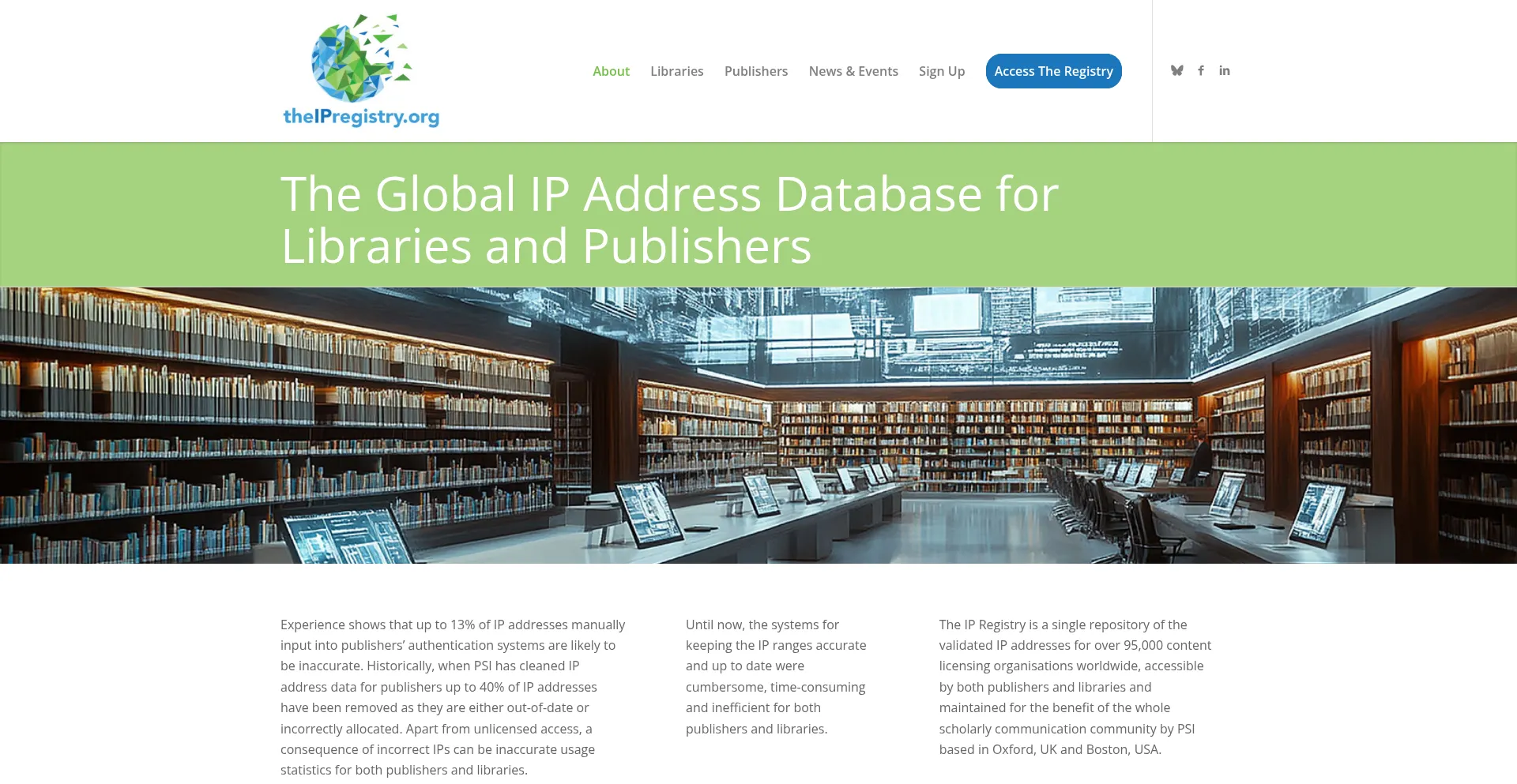 The IP Registry is a repository of the validated IP addresses for over 70,000 content licensing organisations worldwide, accessible by publishers and libraries.