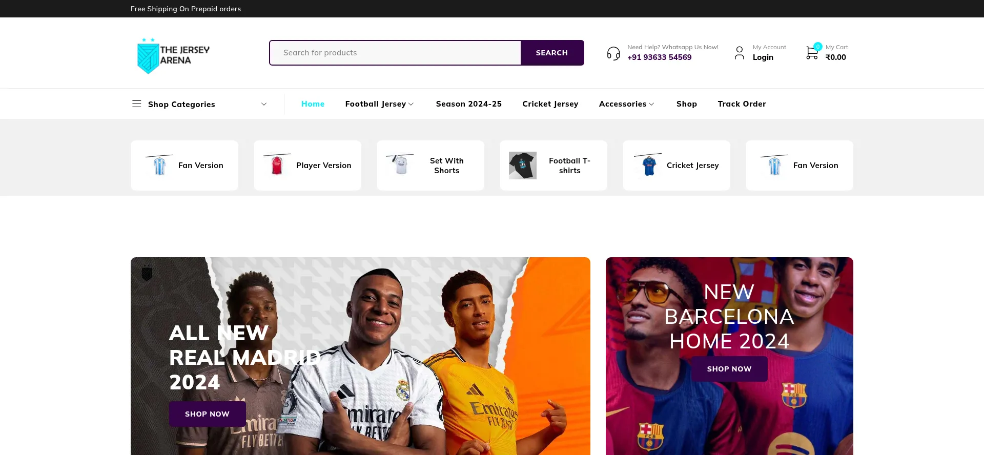 The website leverages popular product names and brands to attract traffic and generate user interest. These products may be offered through promotional campaigns or discount strategies designed to increase visitor engagement and conversion rates for thejerseyarena.in.
