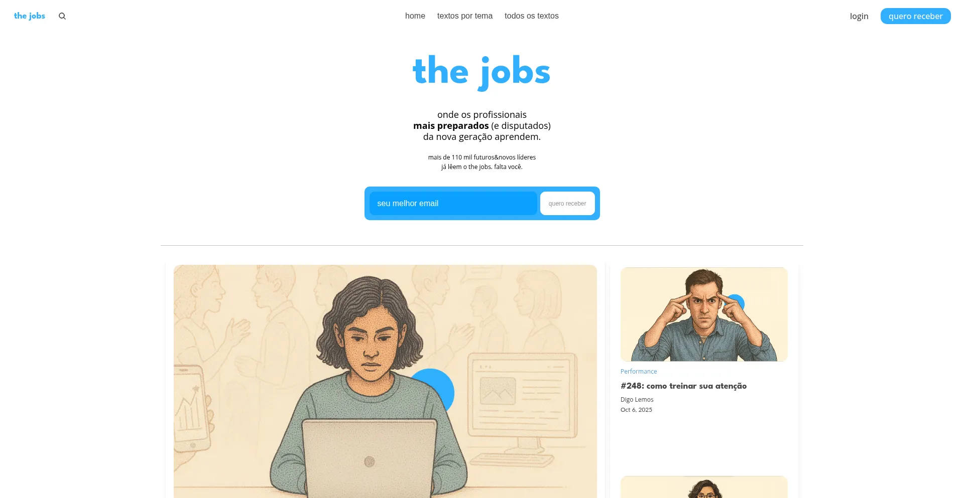 onde os profissionaismais preparados (e disputados)da nova geração aprendem.mais de 110 mil futuros&novos líderesjá lêem o the jobs.