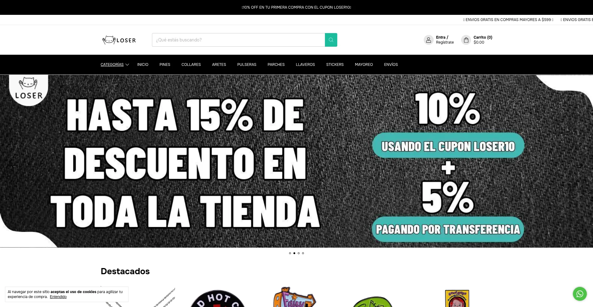 Compra productos de Loser por internet. Tenemos pines, parches y más. Haz tu pedido y paga en línea.