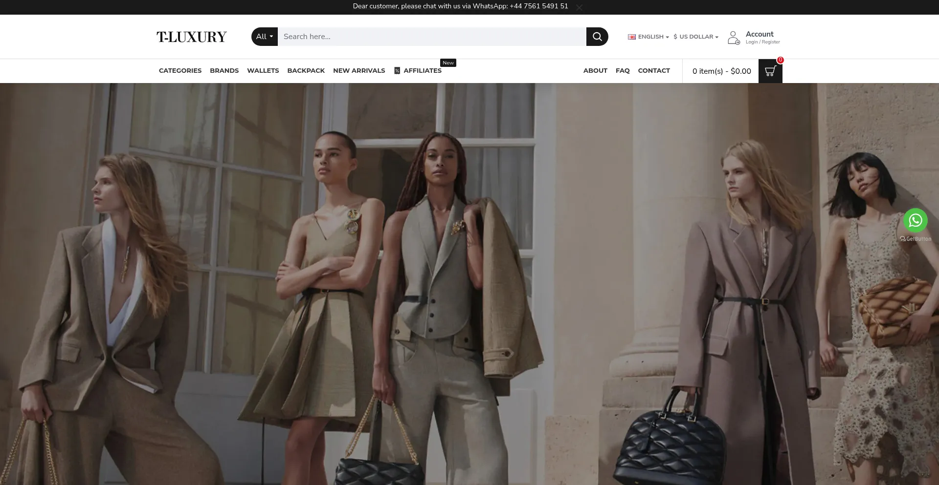 The website features luxury brand names or high-value products. This may indicate potential counterfeit merchandise or unauthorized brand usage, particularly if the site lacks official dealer authorization. Exercise heightened caution when evaluating authenticity.