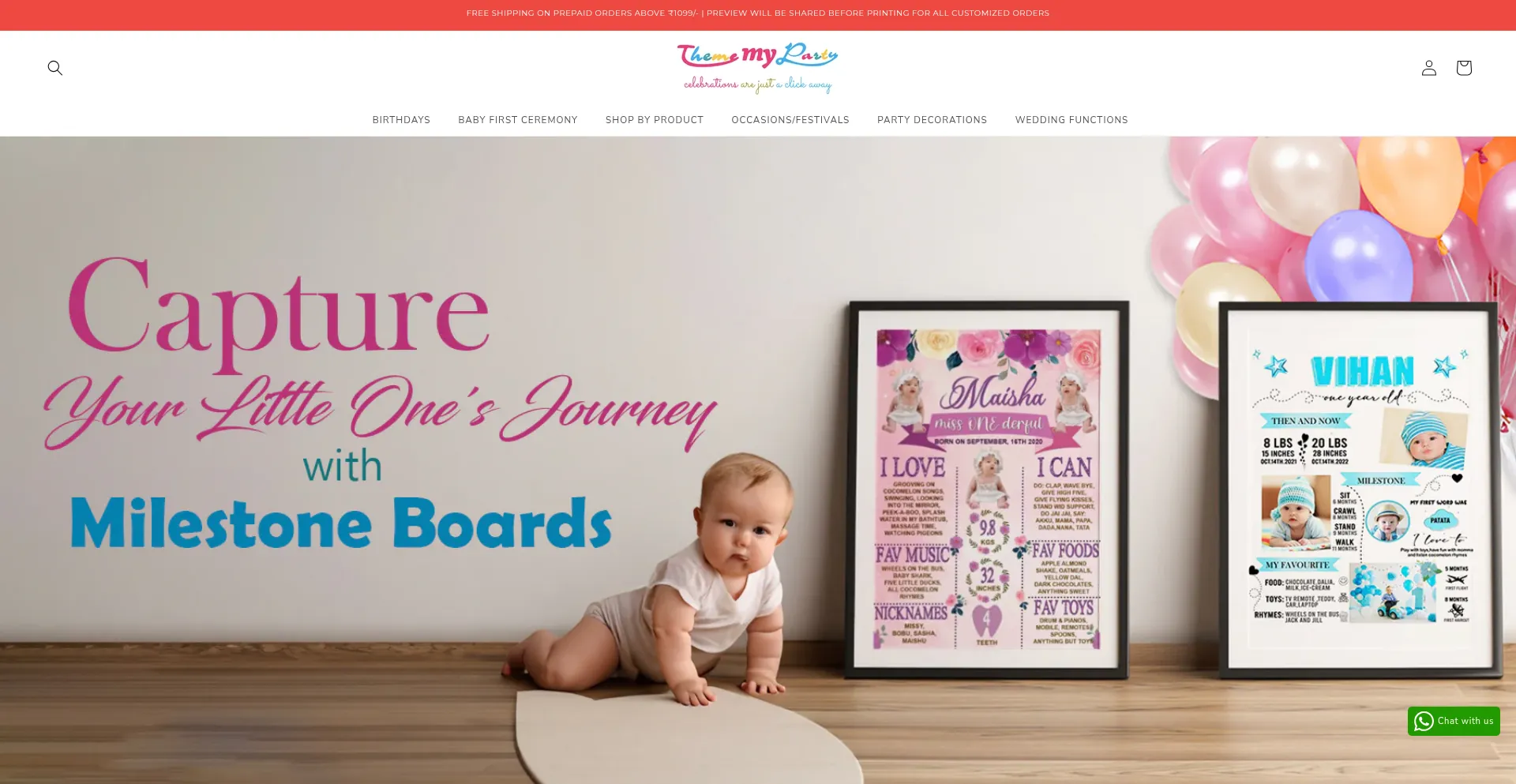 Analysis indicates that thememyparty.in operates as an e-commerce platform facilitating online transactions for goods or services. The website implements shopping cart functionality, payment processing systems, and product catalog features typical of commercial retail operations.