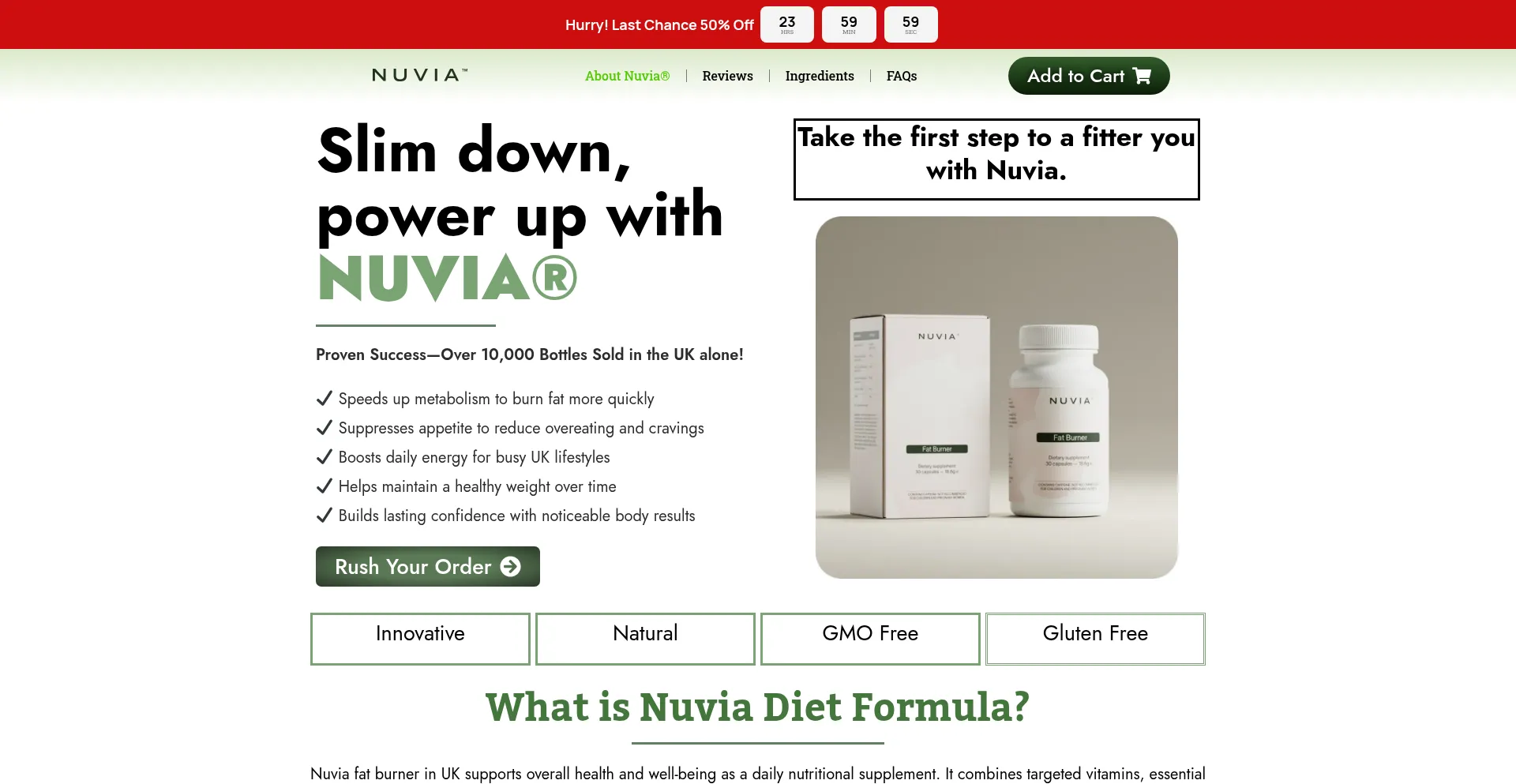 Order Nuvia Fat Burner diet capsules from the official website in the United Kingdom. The weight-loss superdrug is available at a discounted price.