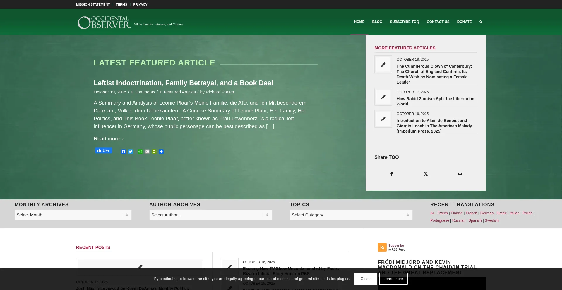 The website implements cookie consent mechanisms in compliance with privacy regulations such as GDPR or CCPA. This demonstrates that theoccidentalobserver.net adheres to data protection standards and provides users with control over personal data collection practices.