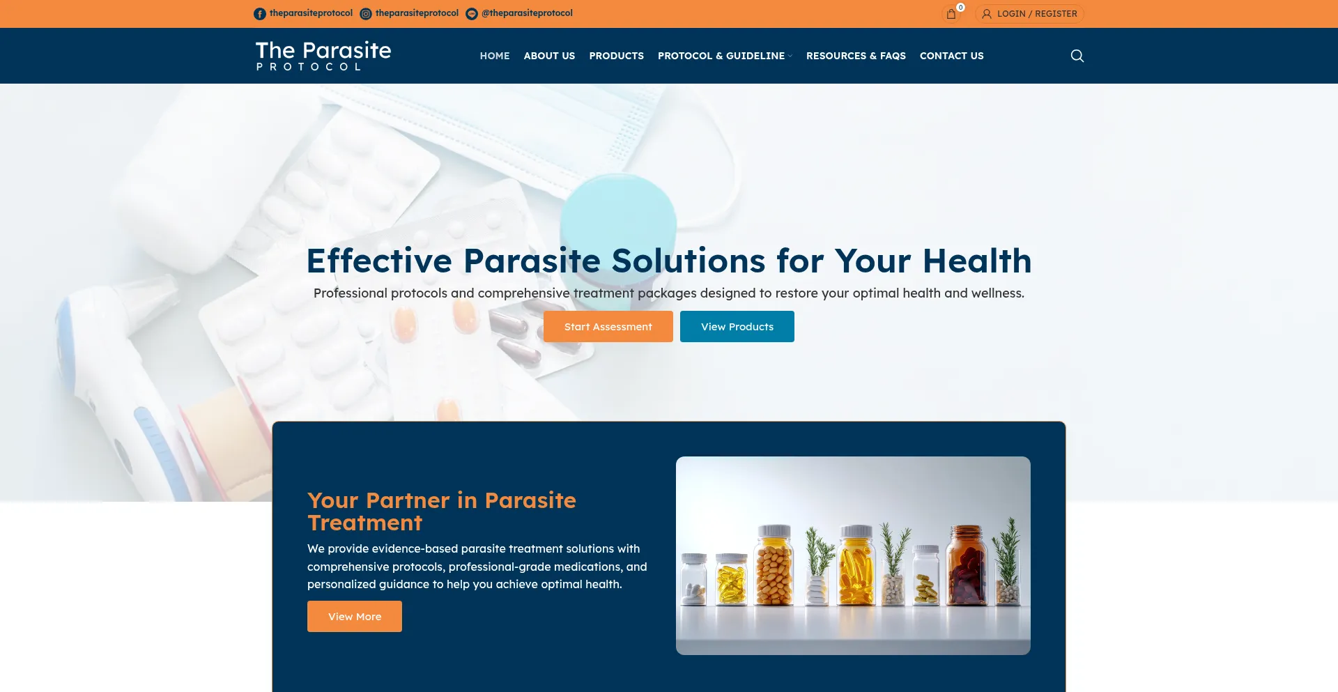 Analysis indicates that theparasiteprotocol.com operates as an e-commerce platform facilitating online transactions for goods or services. The website implements shopping cart functionality, payment processing systems, and product catalog features typical of commercial retail operations.