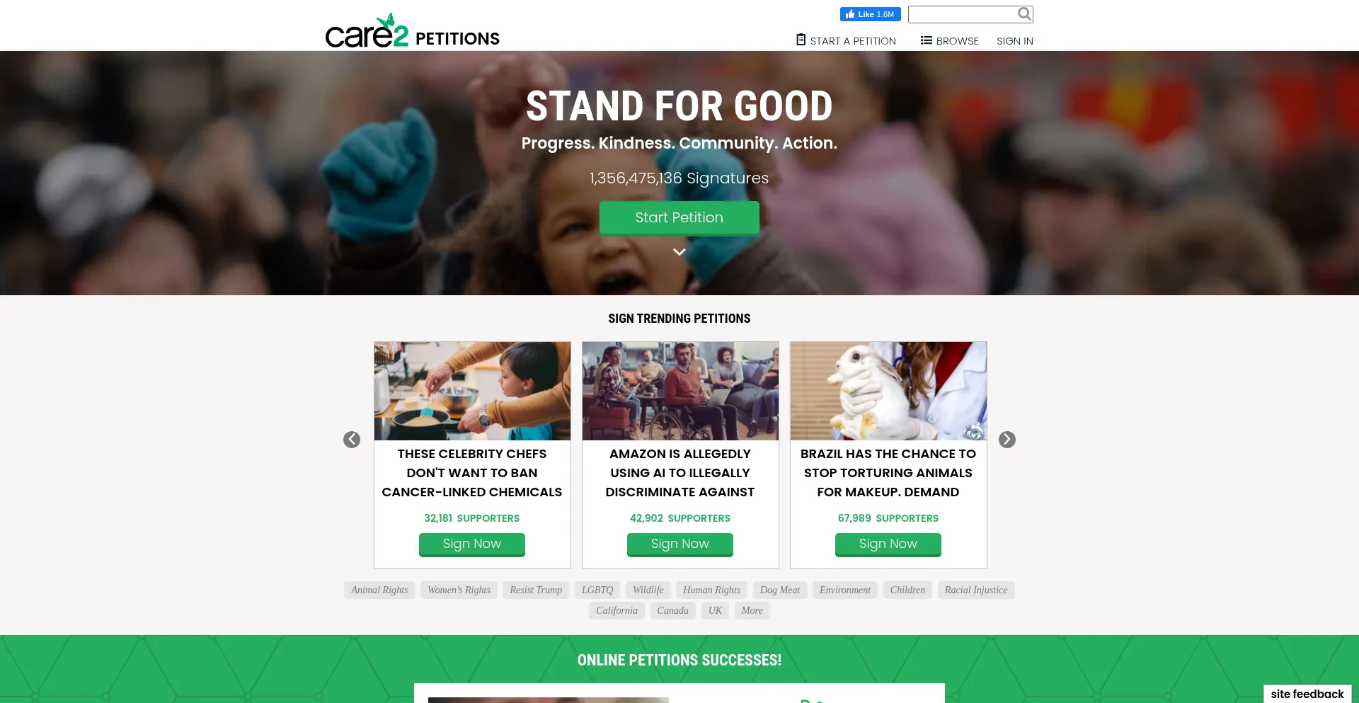 The thepetitionsite.com website uses Google Tag Manager to add and update tracking tags on its website.