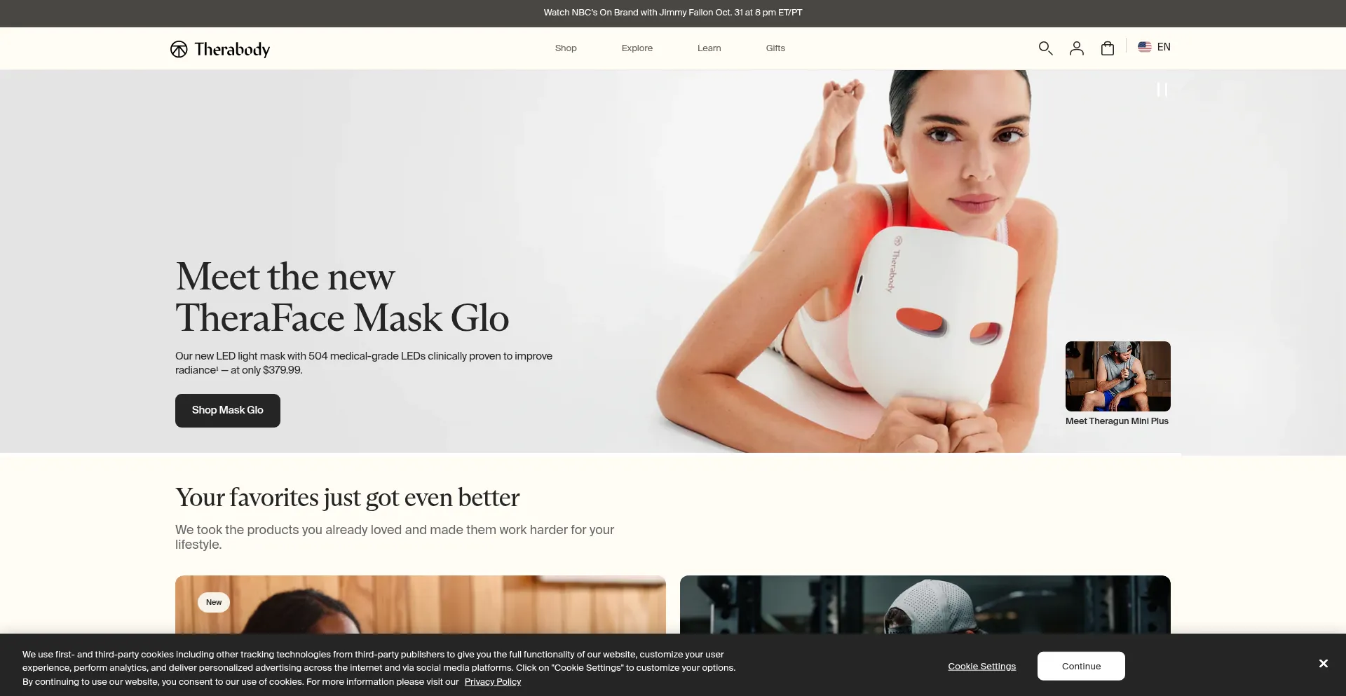 The website implements cookie consent mechanisms in compliance with privacy regulations such as GDPR or CCPA. This demonstrates that theragun.com adheres to data protection standards and provides users with control over personal data collection practices.