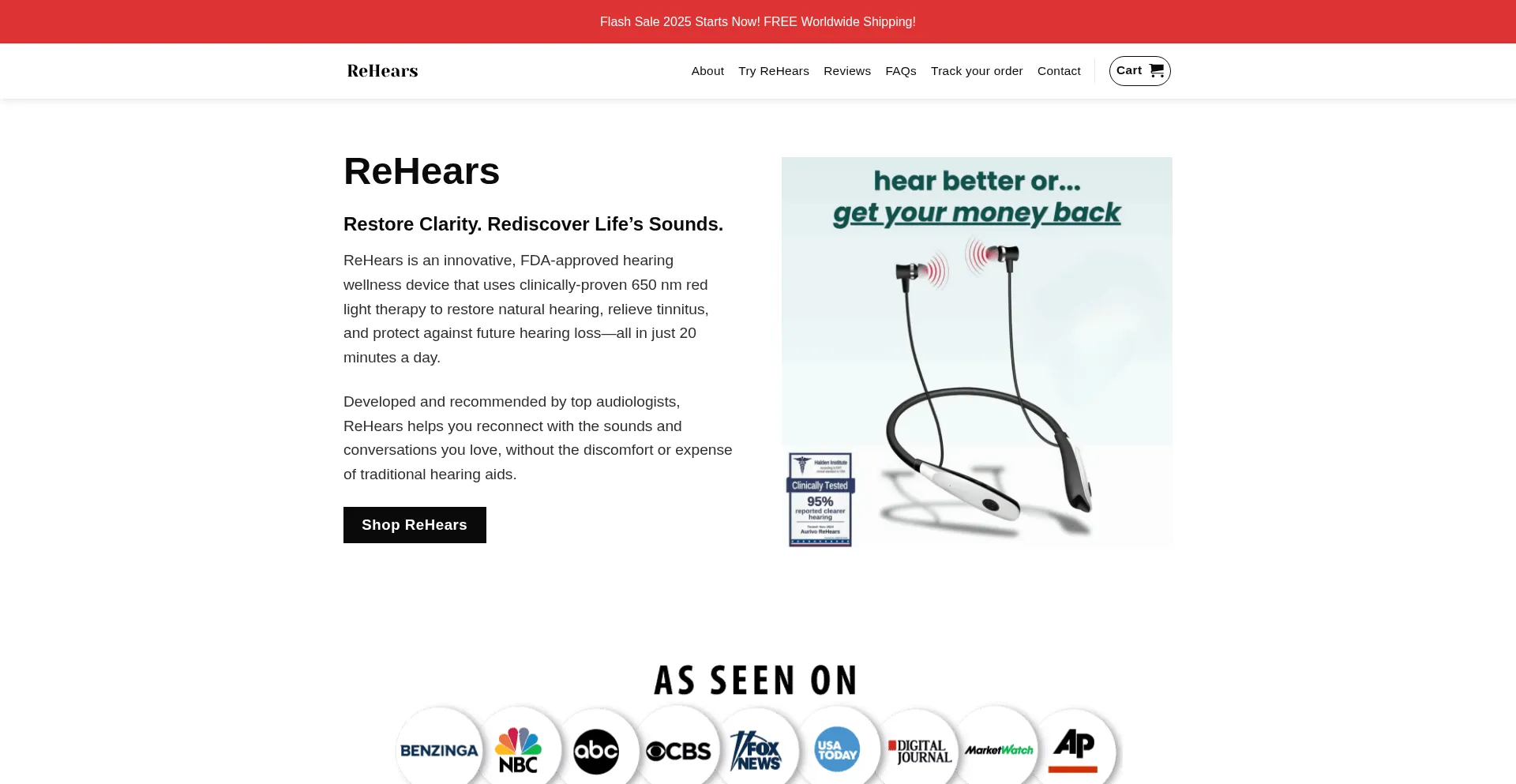 ReHears is a non-invasive hearing device that uses clinically proven 650 nm red light therapy to improve hearing, relieve tinnitus, and protect against further hearing loss. Wit...