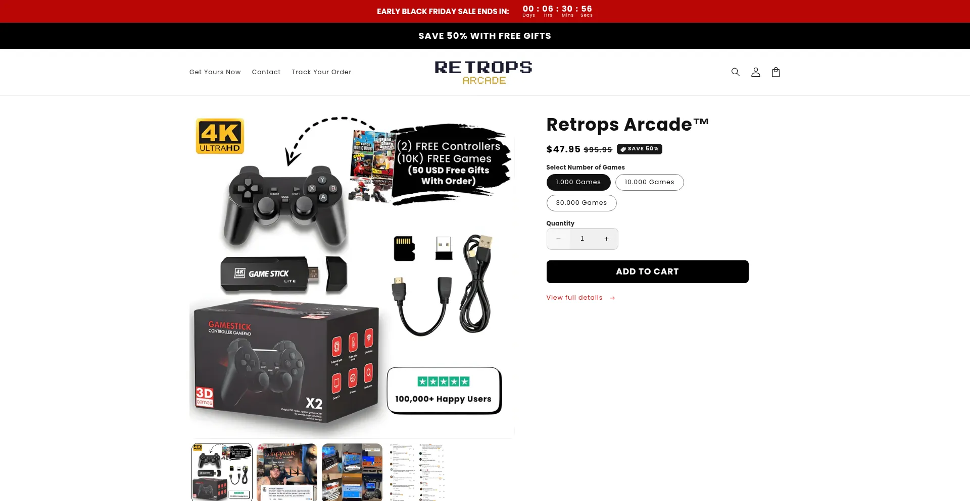 Analysis indicates that theretropsarcade.com operates as an e-commerce platform facilitating online transactions for goods or services. The website implements shopping cart functionality, payment processing systems, and product catalog features typical of commercial retail operations.