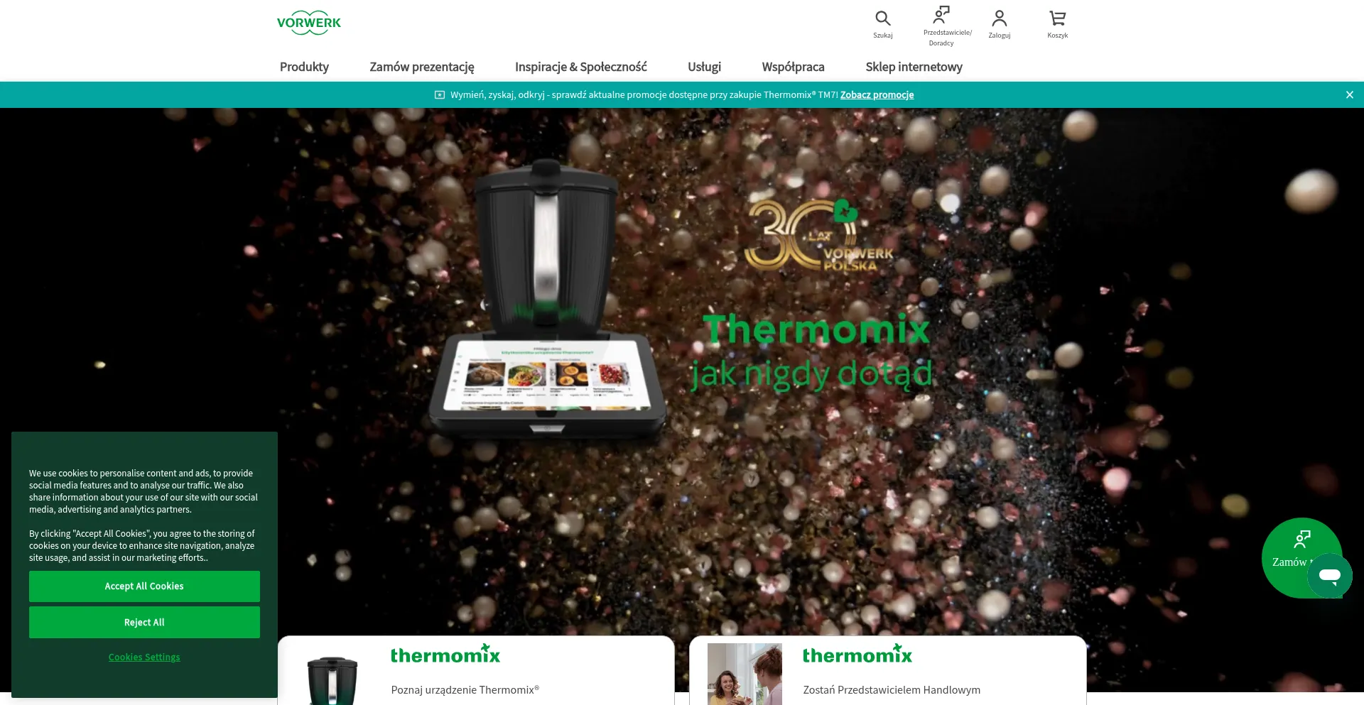 The website implements cookie consent mechanisms in compliance with privacy regulations such as GDPR or CCPA. This demonstrates that thermomix.pl adheres to data protection standards and provides users with control over personal data collection practices.