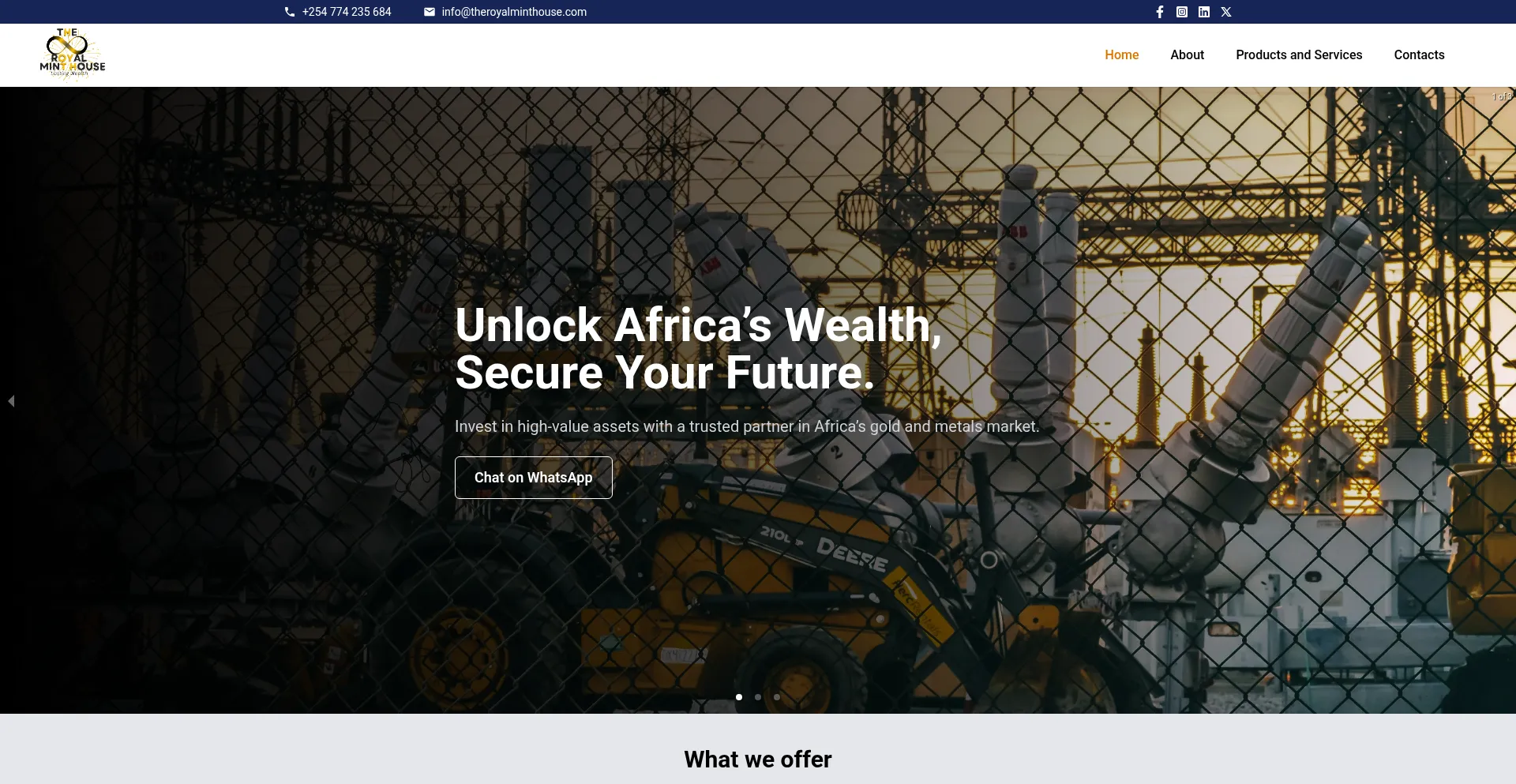 The Royal Mint House is a premier investment agency based in Nairobi, Kenya, specializing in guiding clients to invest in the booming African market. With expertise in gold and ...