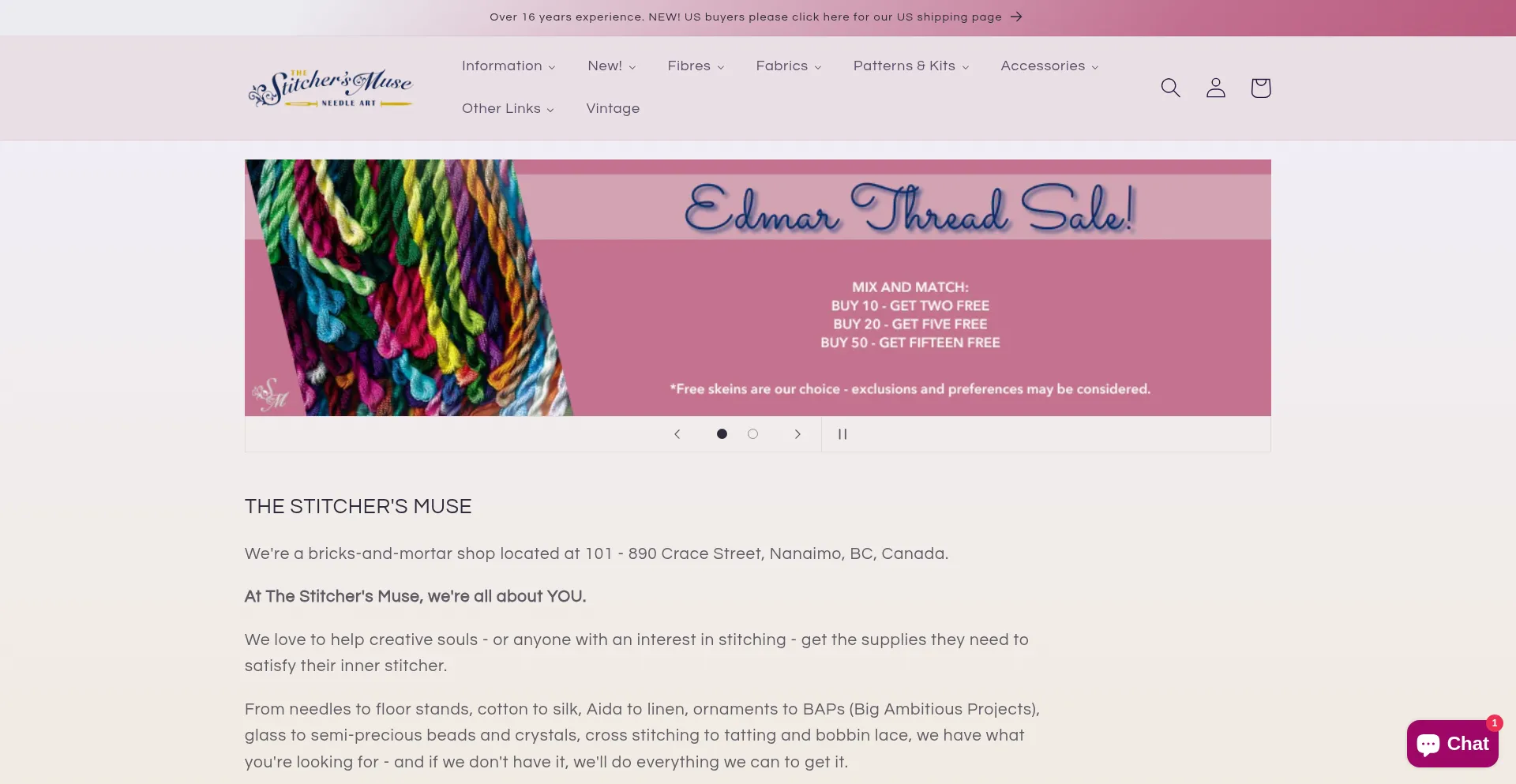 A divine needlework shop located in Nanaimo, British Columbia, Canada. Cross stitch, needlepoint, canvaswork, lace making, embroidery - we carry the threads, fabrics, patterns, ...