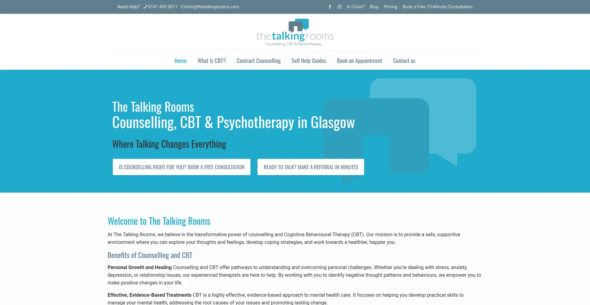 With clinics in Glasgow and East Kilbride, The Talking Rooms specialise in cognitive behavioural therapy (CBT), counselling and psychotherapy to aid improved mental health and w...