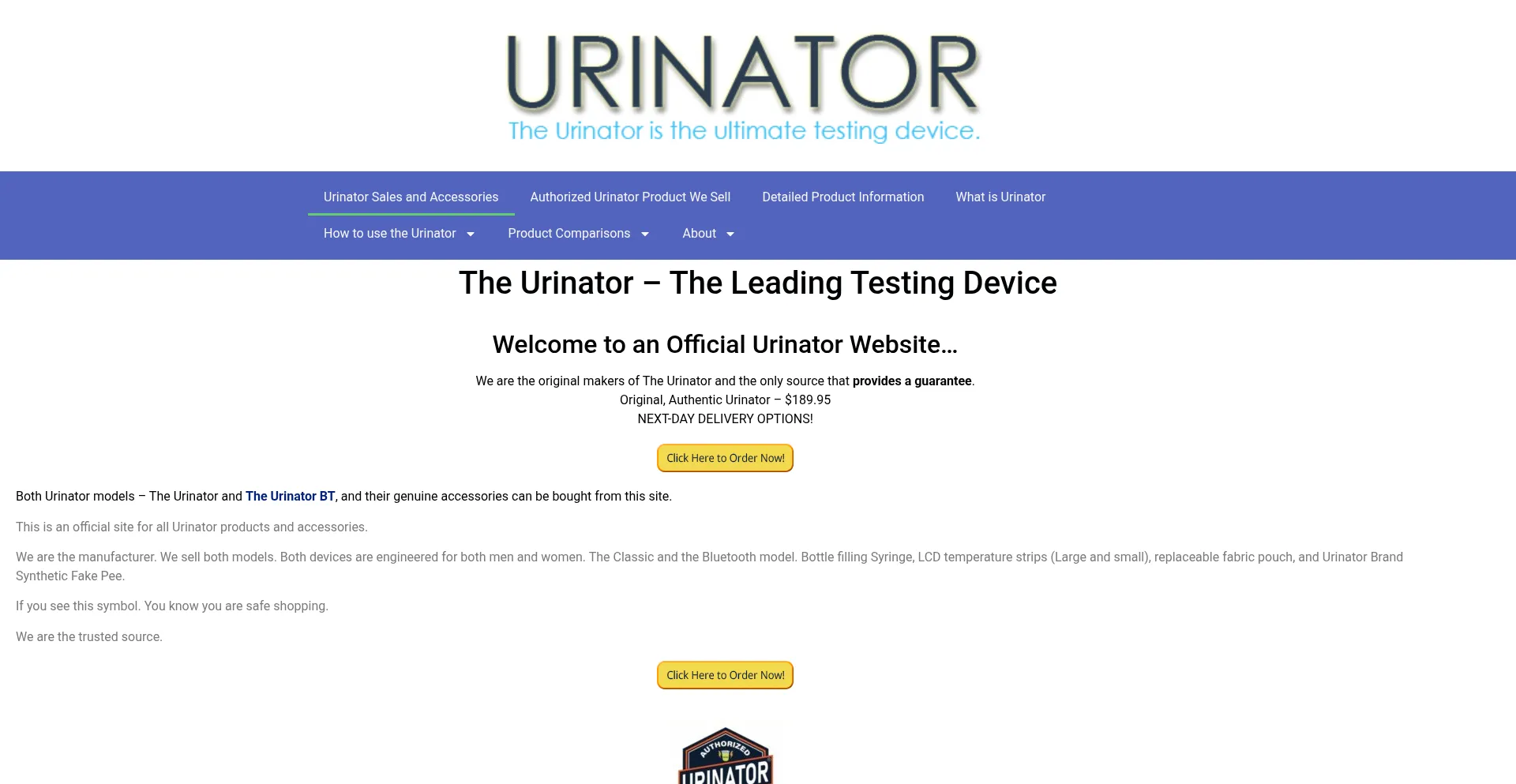 The Urinator Device with warranty, Authorized manufacturer Sales and Supplies. We were the original battery powered urine warmer and fake pee since 1998.