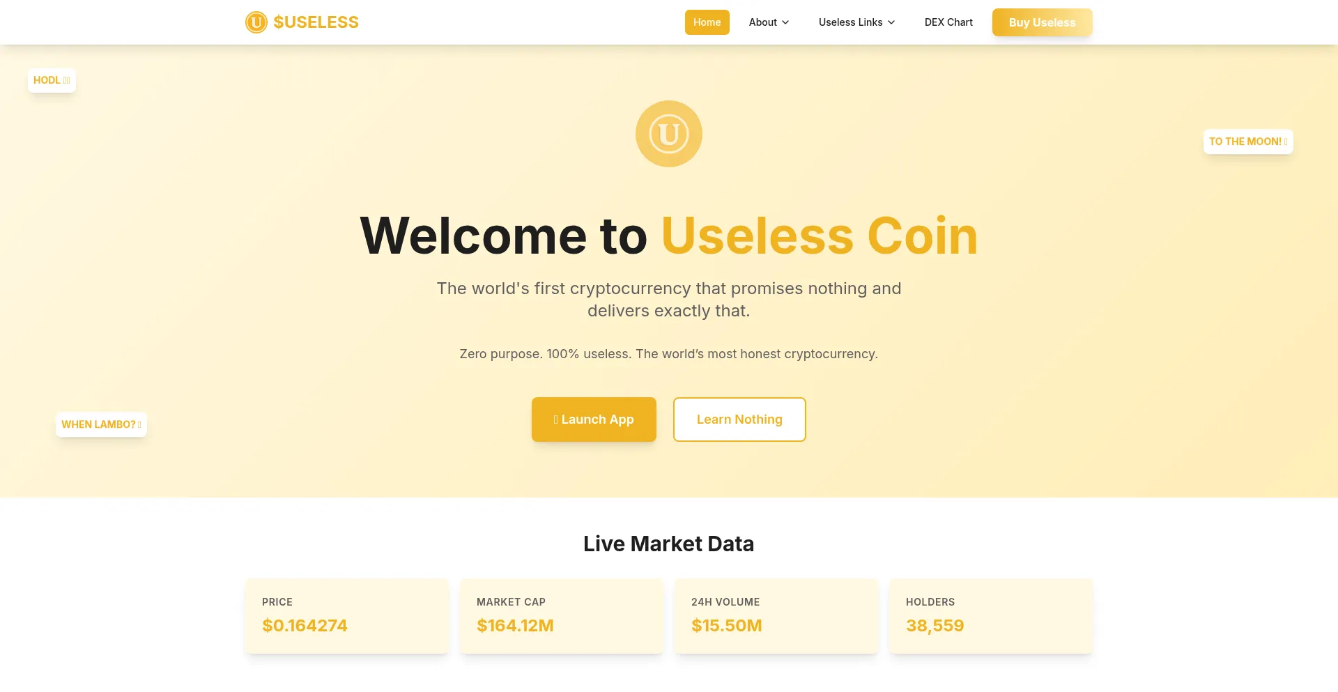 Useless Coin ($USELESS) - The world's first cryptocurrency designed to do absolutely nothing. Zero utility, zero purpose, 100% vibes. Buy the most honest meme coin on Solana blo...
