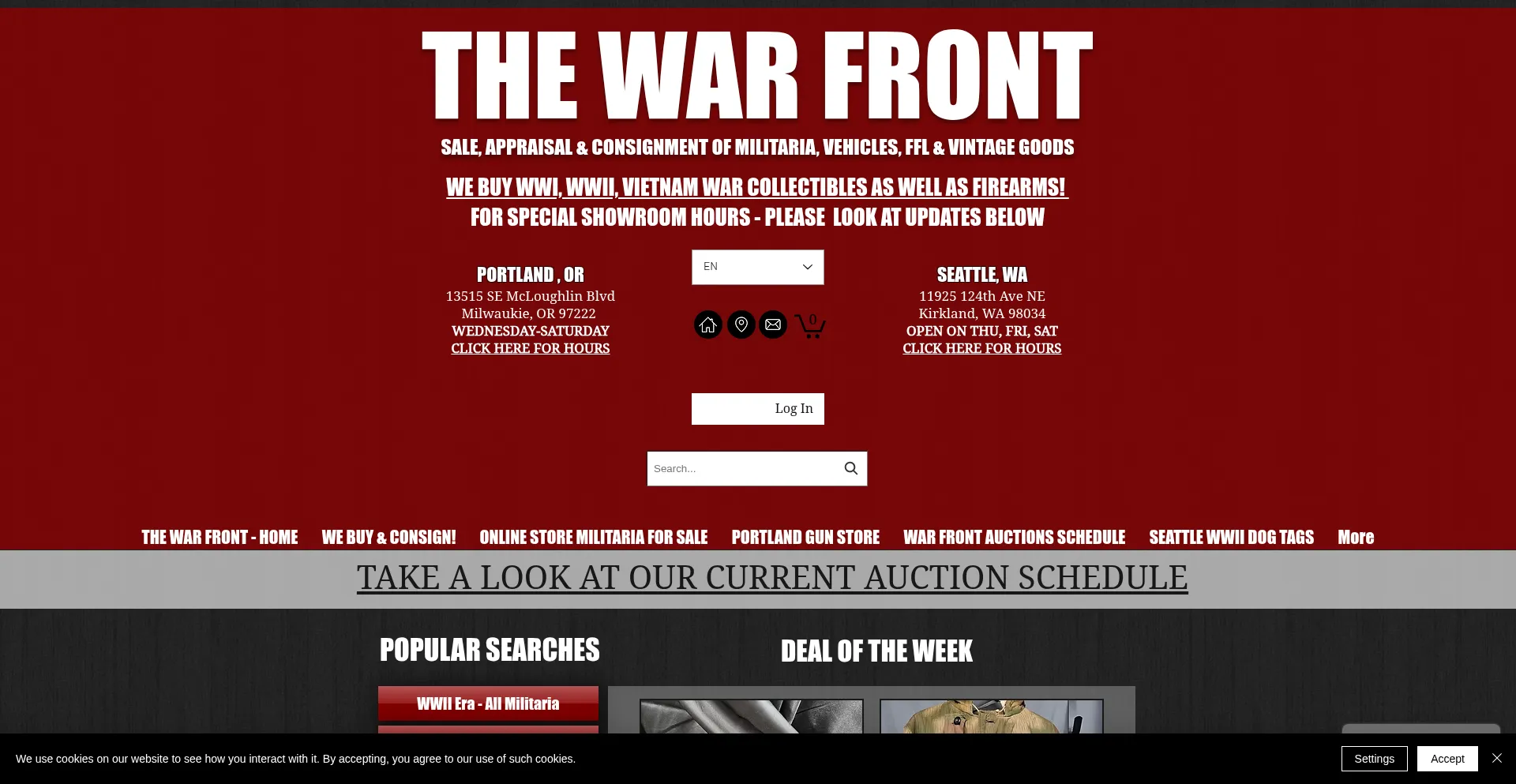 The War Front Military Antiques is a store in Portland & Seattle. Sale & consignment of WWI, WWII, Vietnam militaria collectibles, vehicles, firearms.