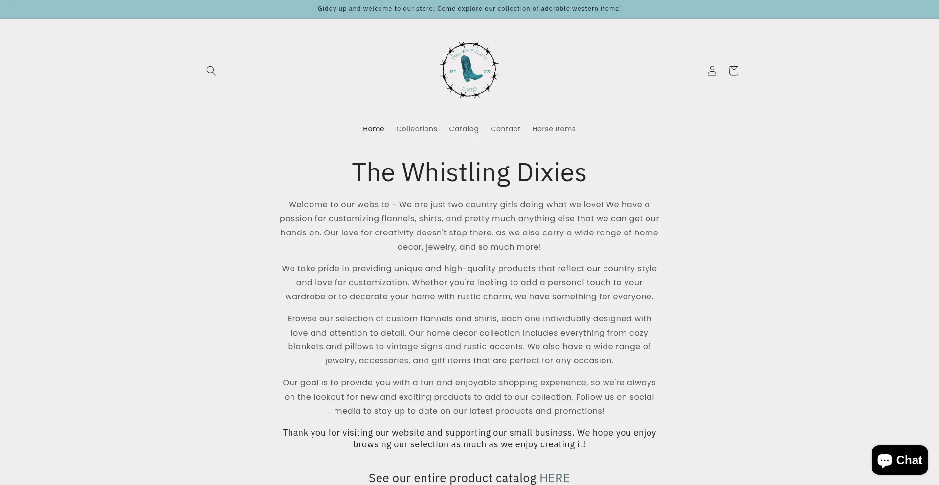 Analysis indicates that thewhistlingdixies.com operates as an e-commerce platform facilitating online transactions for goods or services. The website implements shopping cart functionality, payment processing systems, and product catalog features typical of commercial retail operations.