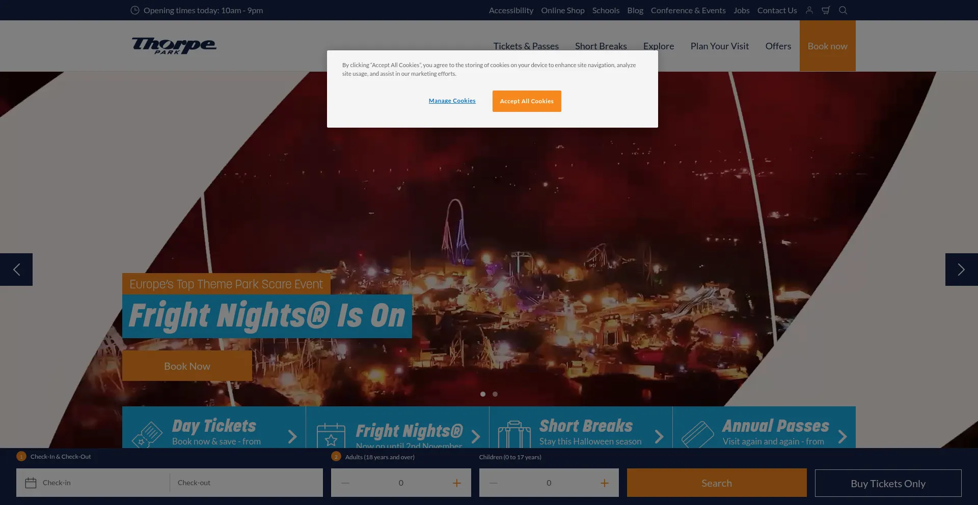 The website implements cookie consent mechanisms in compliance with privacy regulations such as GDPR or CCPA. This demonstrates that thorpepark.com adheres to data protection standards and provides users with control over personal data collection practices.