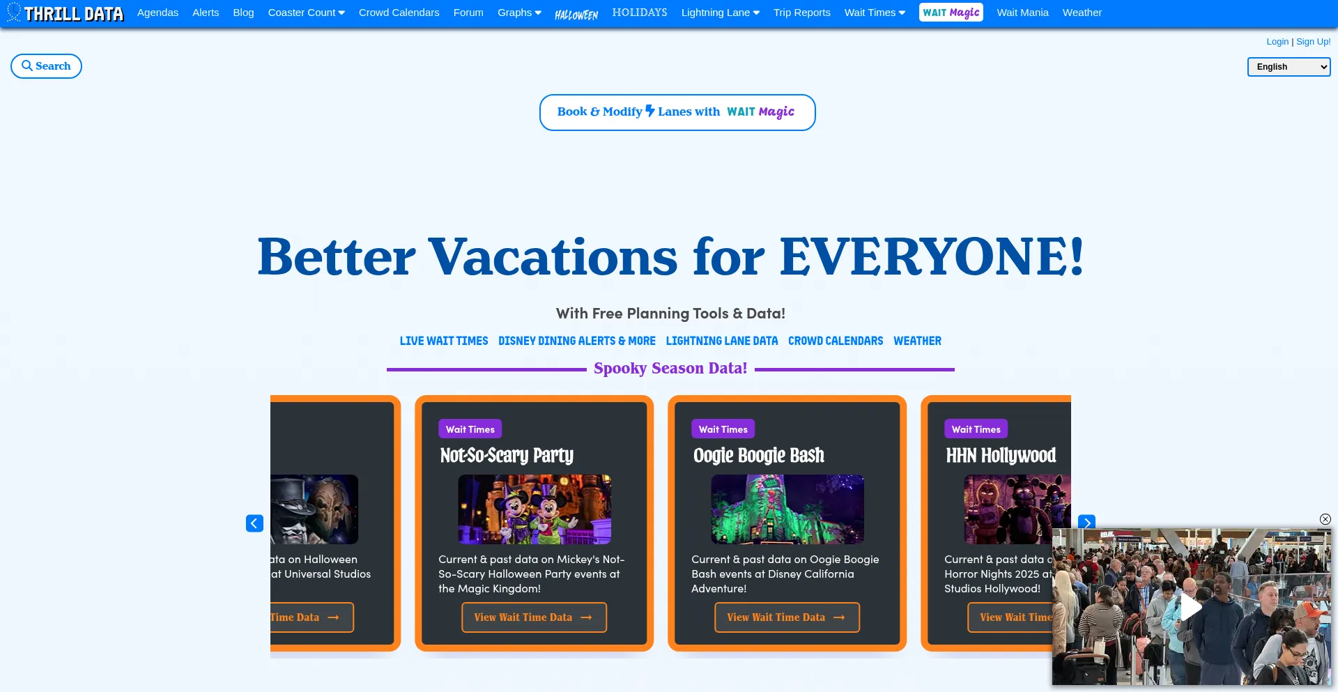 Use data to power your vacations! Learn what to ride and when with wait times at Disney World, Disneyland, Universal Orlando, Universal Hollywood, Six Flags, Cedar Point, Kings ...